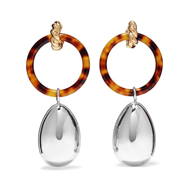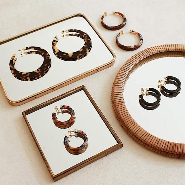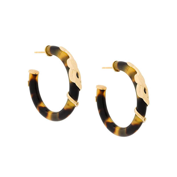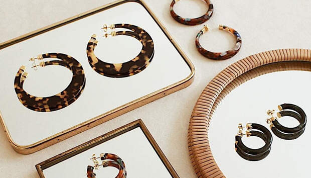 Эту осень непременно нужно встречать в украшениях с "черепаховым" принтом: это могут быть колье из нескольких крупных звеньев, крупные объемные браслеты, кольца в винтажном стиле или, что особенно актуально, акцентные серьги.