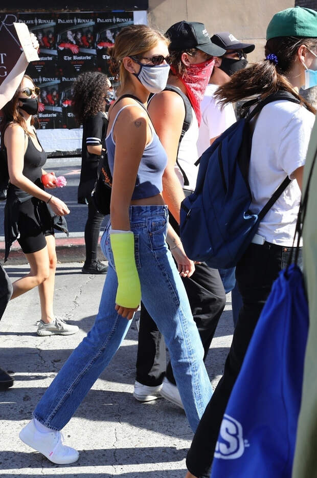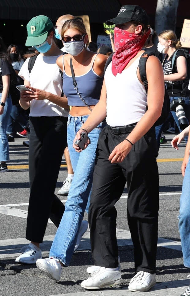 Массовые протесты, направленные на борьбу с расизмом и дискриминацией, охватили США. К митингам присоединились многие селебрити: на улицы городов вышли с плакатами Дженнифер Лопес с бойфрендом Алексом Родригесом, Кара Делевинь, Эмили Ратаковски, Бен Аффлек и Ана ди Армас, Кристен Стюарт, несгибаемая Мадонна на костылях и многие другие. К их рядам примкнула и Кайя Гербер: модель попала в хроники папарацци во время шествия по Лос-Анджелесу в компании звезды сериала "Ривердейл" Коула Спроуса.