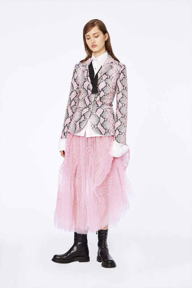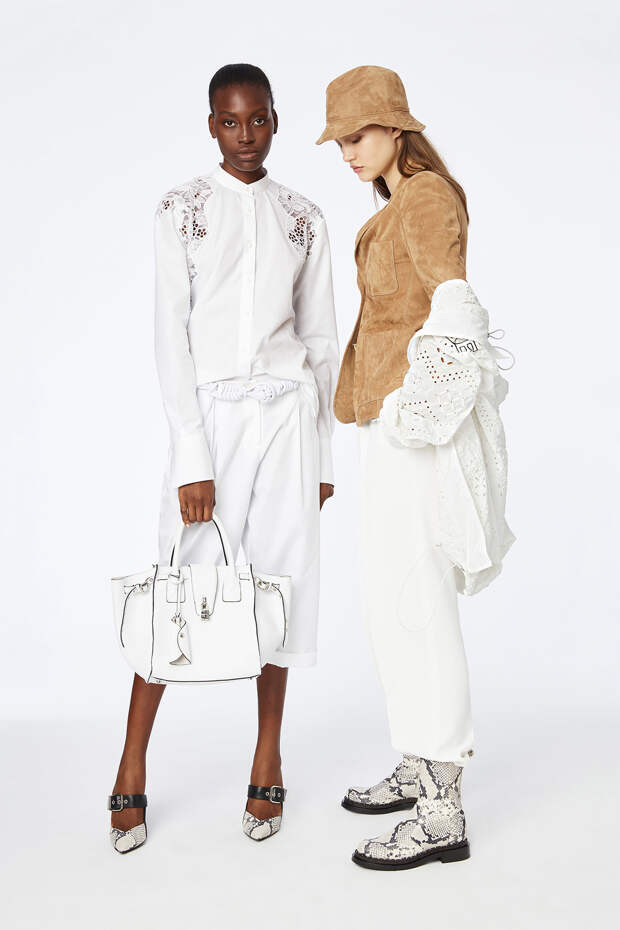 На кадрах для своей новой круизной коллекции Эрманно Шервино решил полностью отказаться от декораций, чтобы ничего не отвлекало от совершенных и продуманных до мельчайших деталей образов. Зато на них нашлось место для анималистичных принтов и конфетных оттенков: к примеру, змеиный окрас в изящной огранке "пригрелся" на сапогах с широким голенищем, юбках-карандашах, жакетах с легким розовым подтоном и ультрамодных панамах, которые уже стали частью даже делового гардероба.
