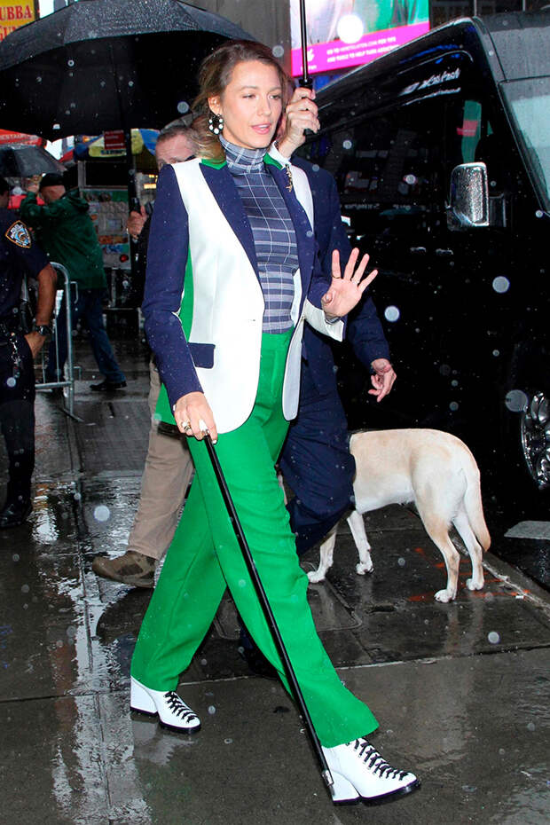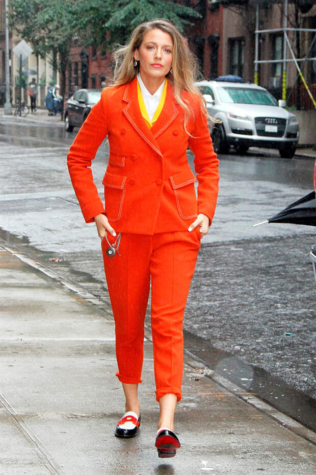 Последний месяц Блейк Лайвли появлялась на публике исключительно в брючных костюмах. С чем связана новое увлечение актрисы доподлинно неизвестно. Но звезда сериала "Сплетница" продолжает гнуть свою модную линию и вновь вышла в свет в костюме. Точнее, в пяти. В течение дня Блейк сменила пять нарядов для разных интервью.