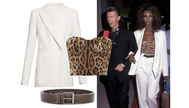 Иман, безусловно, одна из главных фэшиониста конца прошлого века. Несмотря на то что топ-модель повсюду ходила лишь со своим супругом Дэвидом Боуи, ее наряды все равно отлично просматривались - даже на совместных фото. Как, например, этот кипенно-белый брючный костюм, который звезда подиумов дополнила корсетным топом в леопардовой расцветке и шоколадным ремнем на талию.