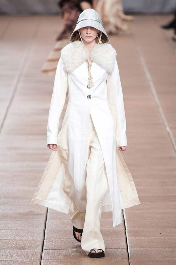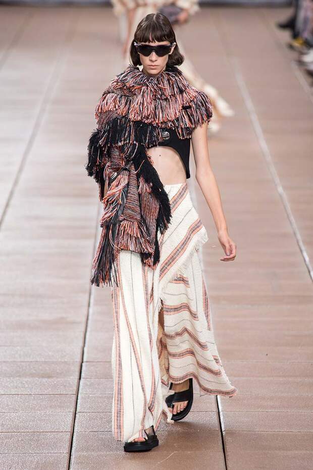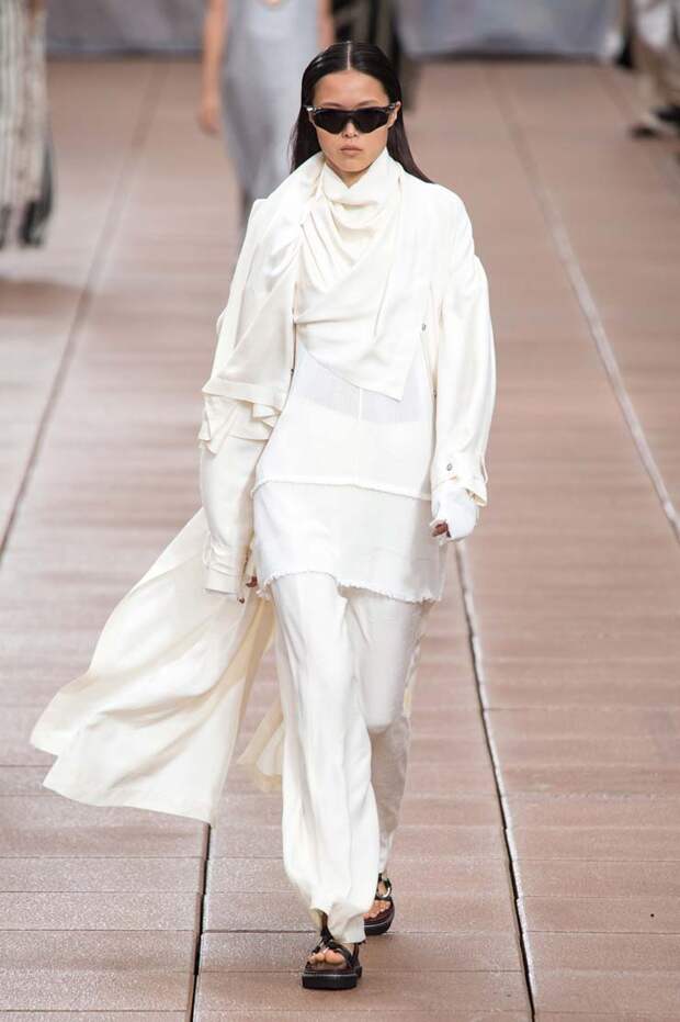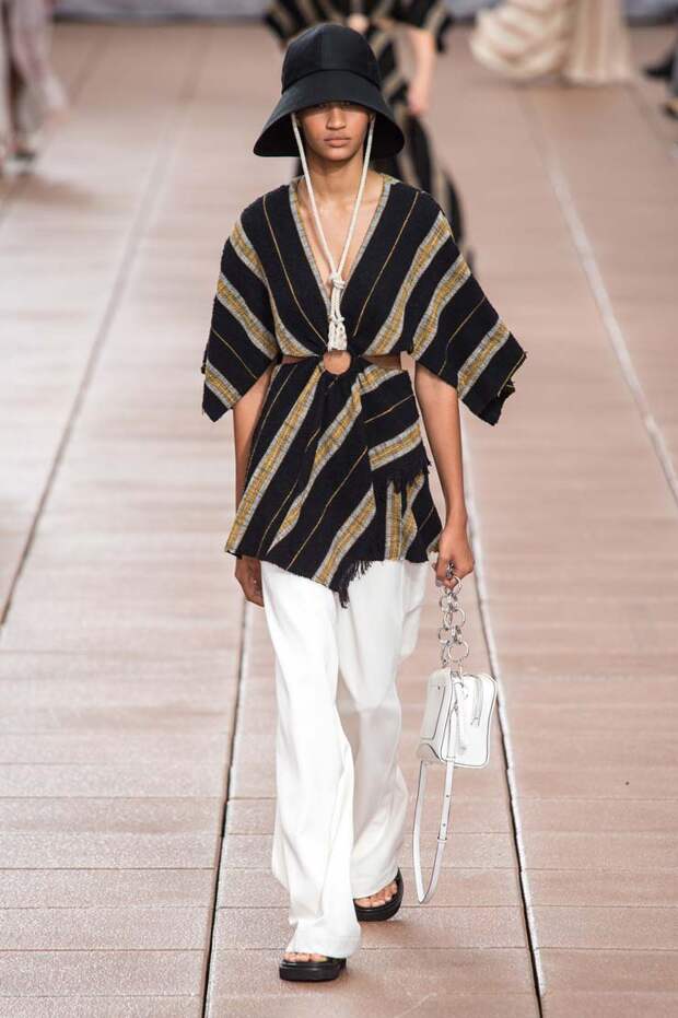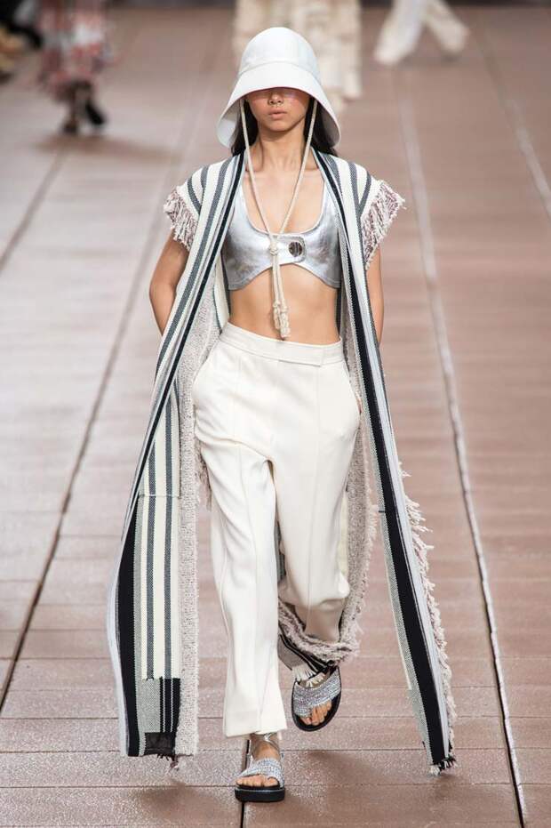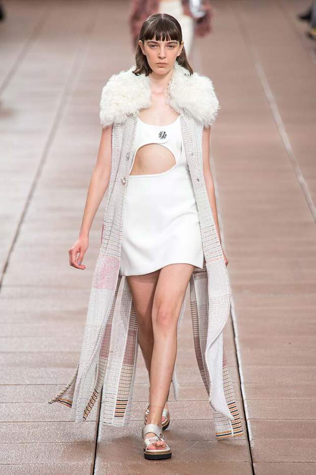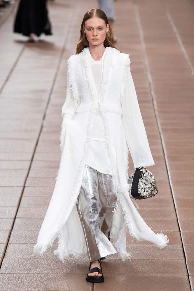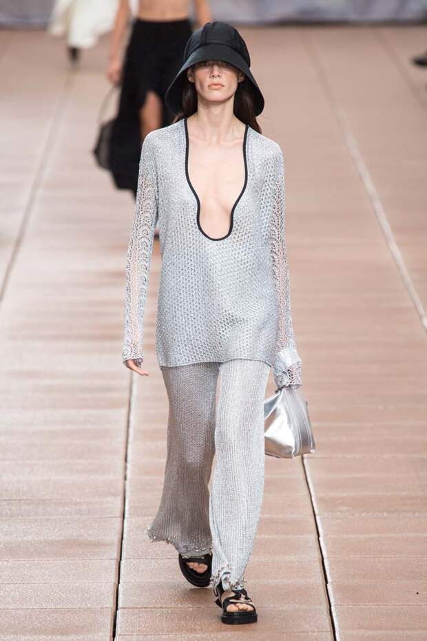 С другой, на те же вещи надеты вязаный жилет, плетеные жакеты и даже кожаное пальто. Пока одни дизайнеры предпочитают стирать границы между гендерным разделением одежды, другие пытаются доказать, что сезоны на самом деле размыты, и если мы хотим носить летние вещи в холод, а зимние — в теплое время, то не должны себе отказывать.