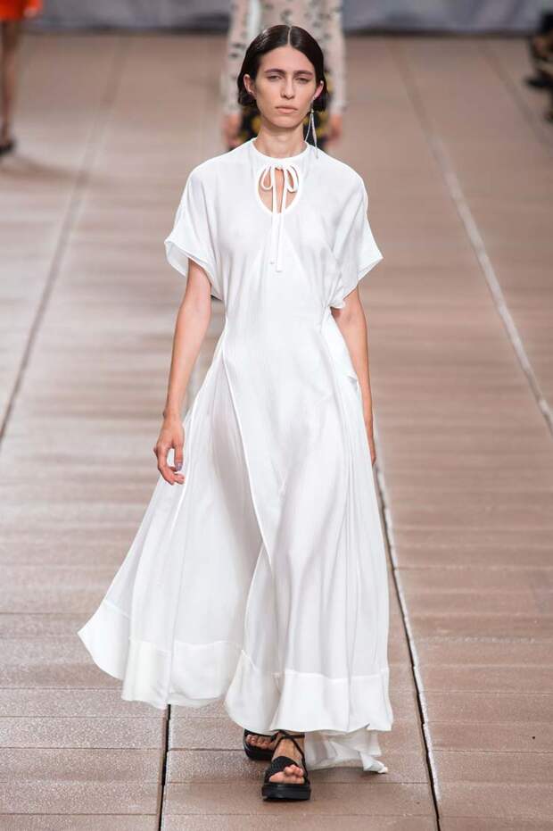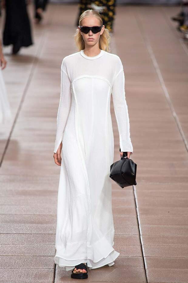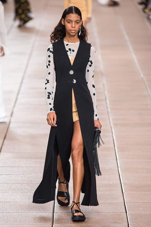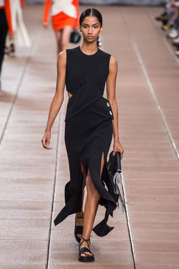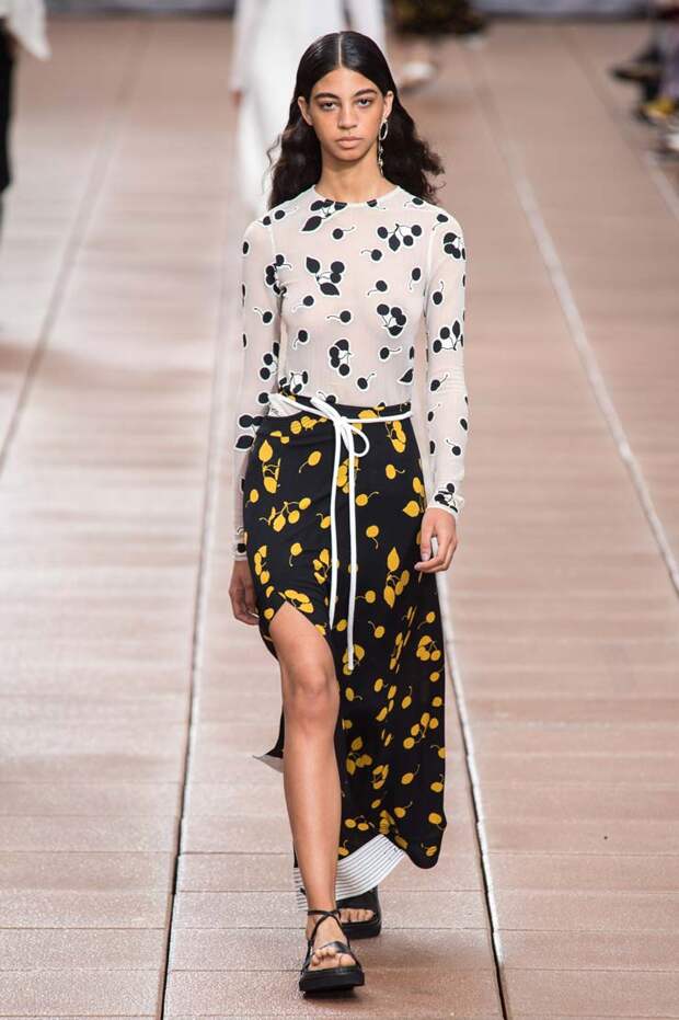 Пусть новая коллекция 3.1 Phillip Lim посвящена только следующей весне и лету, бренд составил универсальные образы, которые подойдут для межсезонья (причем осеннего тоже). С одной стороны, здесь есть довольно открытые и яркие наряды, которые легко предстаить лишь в теплое время года: платья с глубокими V-образными вырезами и оголенной линией талии, принтованные обтягиващие боди и кроп-топы.