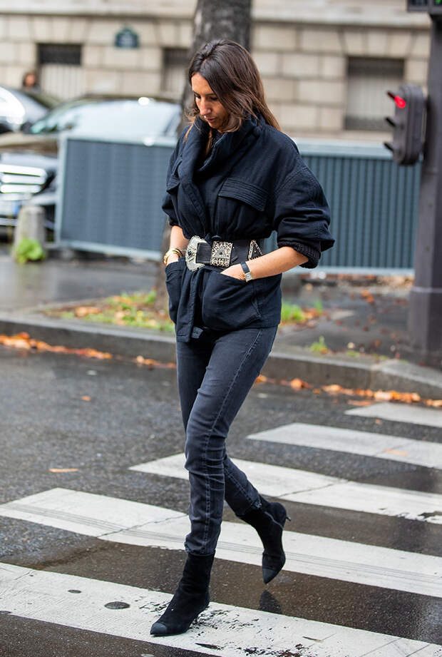 Осенне-зимний период – идеальное время, чтобы достать с дальней полки облегающие джинсы, которые уже давно записаны в список антитрендов. Логика проста: чем более многослойный образ мы можем себе позволить, тем интереснее можно обыграть незамысловатую пару узких джинсов.