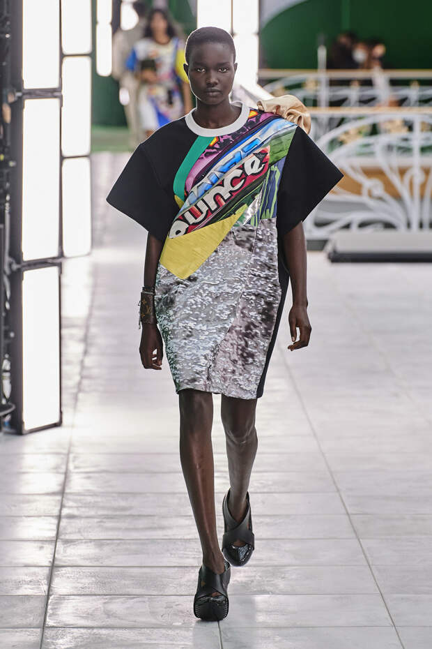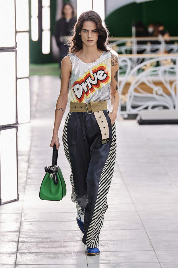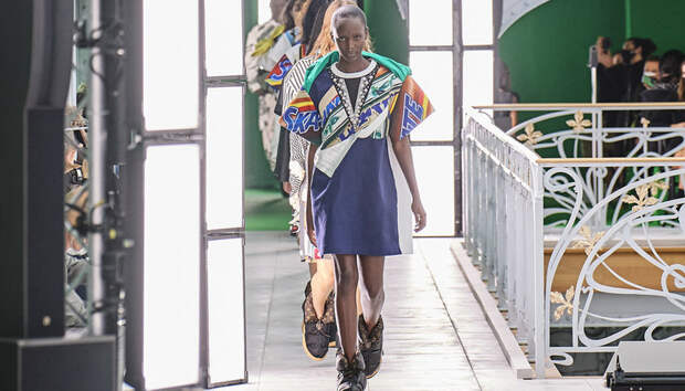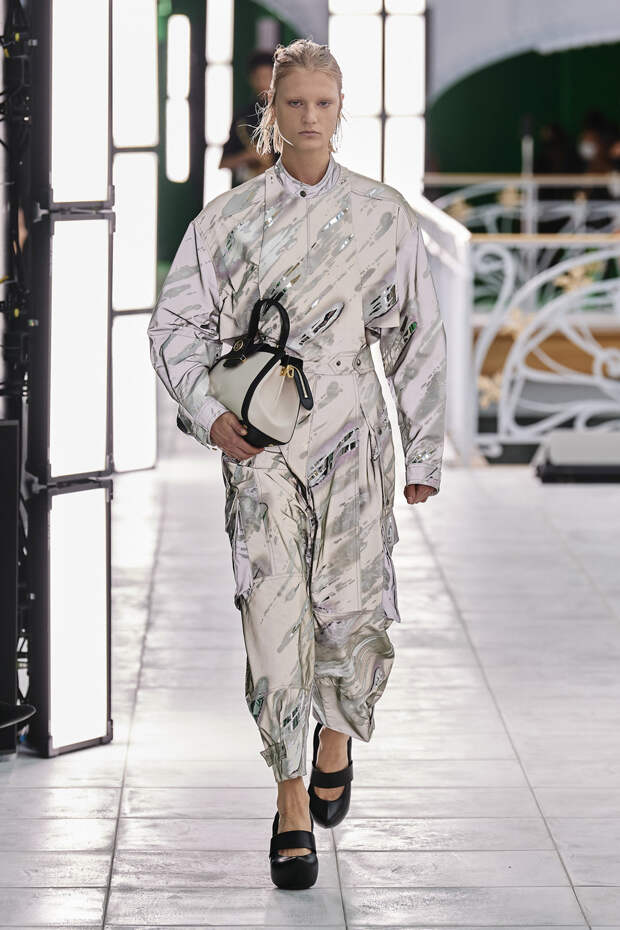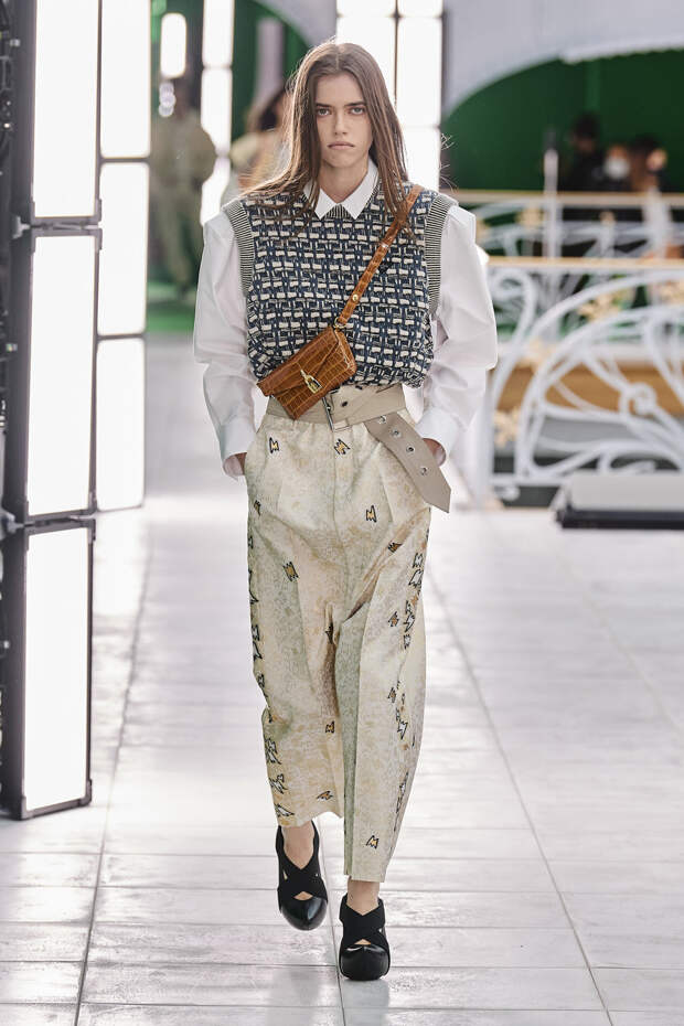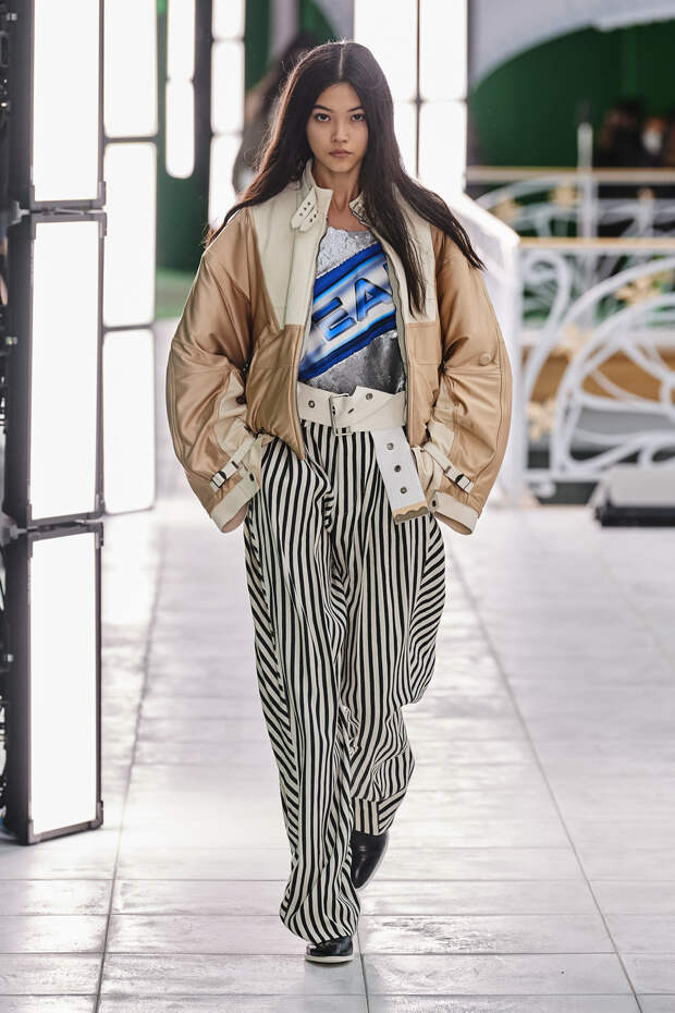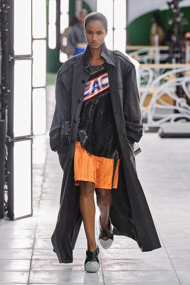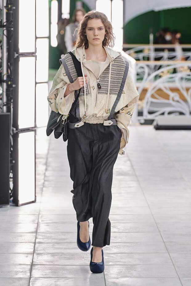 Если же не считать такого неожиданного жеста, Николя Жескьер в этот раз сделал все, что у него хорошо получается: силуэты в духе 80-х с широкими плечами, гипер-объемы и ретро-футуризм. Как и когда-то в коллекциях для Balenciaga, он решил дополнить топы и свитшоты своими знаковыми футуристичными принтами, будто из 80-х. Сейчас они смотрятся даже еще актуальнее — и по причине популярности самого стиля, и из-за всех надежд, которые мы возлагаем на будущее. Через подобные вещи мы как бы пытаемся отодвинуть завесу тайны и узнать, что же нас ждет после пандемии. И хочется верить, что ждет нас много приятного и интересного. С такой одеждой — уж точно.