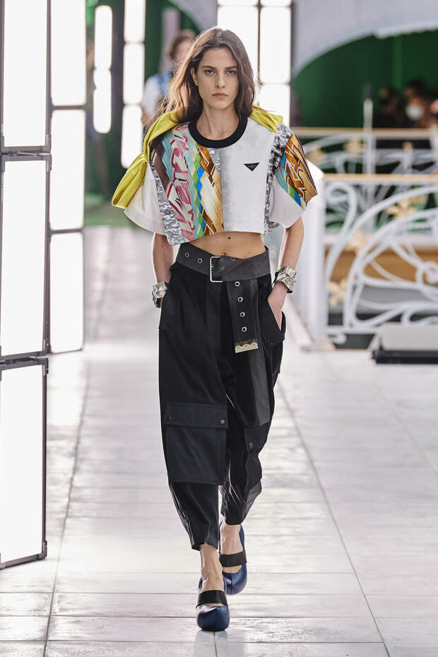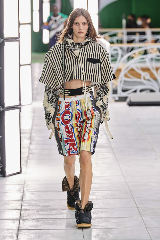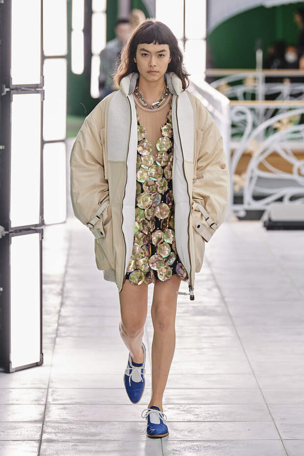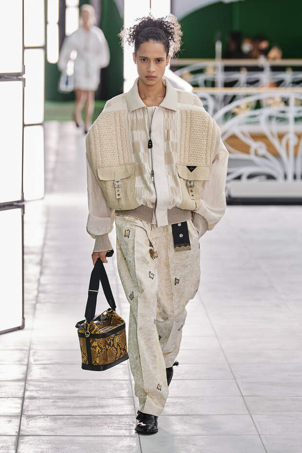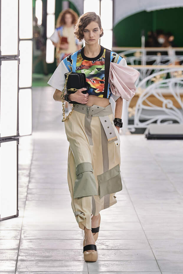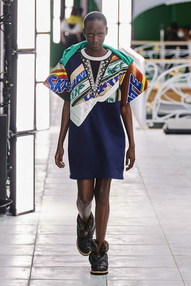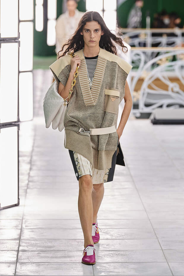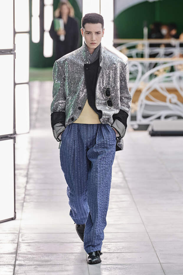 Если же не считать такого неожиданного жеста, Николя Жескьер в этот раз сделал все, что у него хорошо получается: силуэты в духе 80-х с широкими плечами, гипер-объемы и ретро-футуризм. Как и когда-то в коллекциях для Balenciaga, он решил дополнить топы и свитшоты своими знаковыми футуристичными принтами, будто из 80-х. Сейчас они смотрятся даже еще актуальнее — и по причине популярности самого стиля, и из-за всех надежд, которые мы возлагаем на будущее. Через подобные вещи мы как бы пытаемся отодвинуть завесу тайны и узнать, что же нас ждет после пандемии. И хочется верить, что ждет нас много приятного и интересного. С такой одеждой — уж точно.