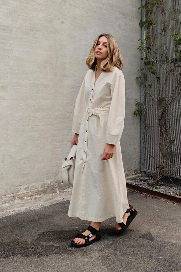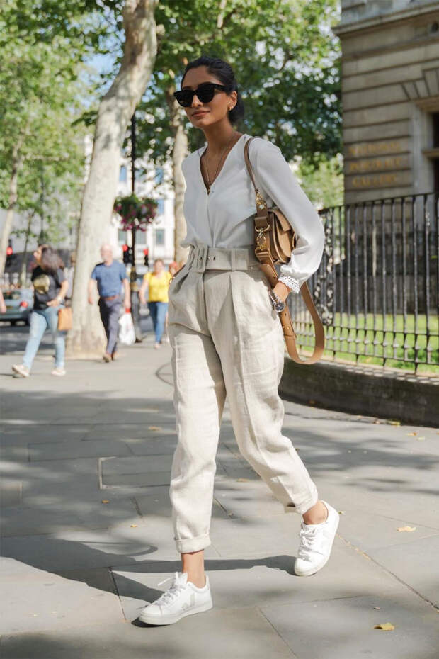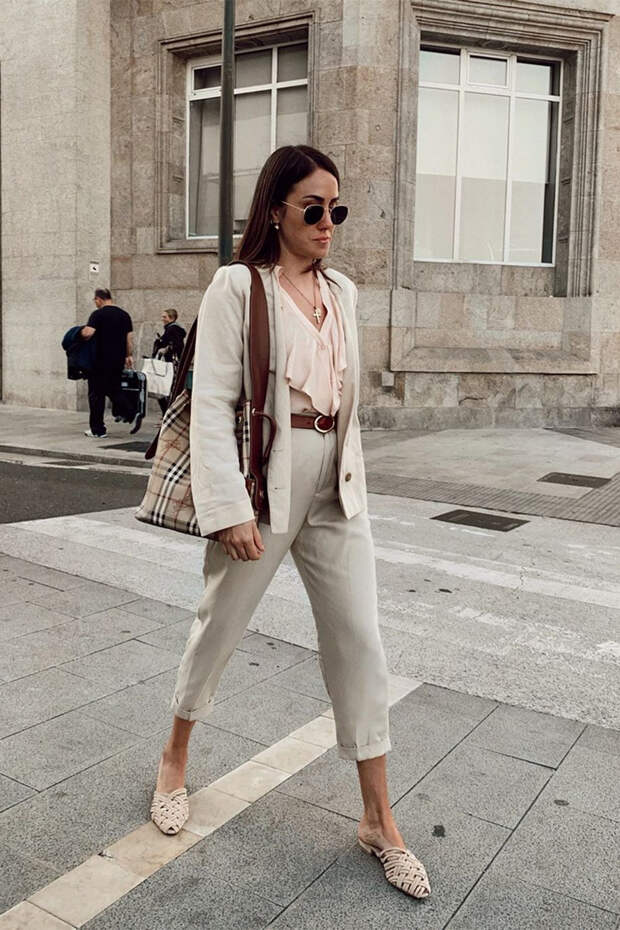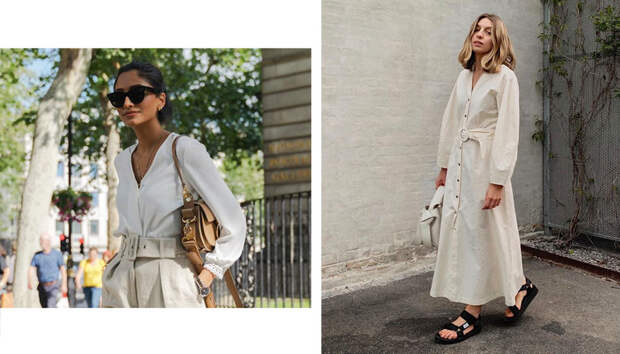 Для пасмурных дней, в том числе и для начала осени, подойдут льняные блейзеры и жакеты, платья с длинным рукавом и брюки с высокой посадкой, костюмы-двойки и легкие тренчи, которые сейчас можно найти как у любимых дизайнеров, так и в доступном масс-маркете. А мы спешим поделиться с вами несколькими образами для вдохновения.