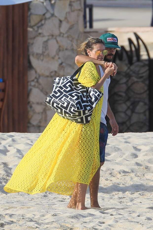 Для похода к морю в этот день Хайди выбрала летящее желтое пляжное платье, большую черно-белую сумку и солнцезащитные очки.