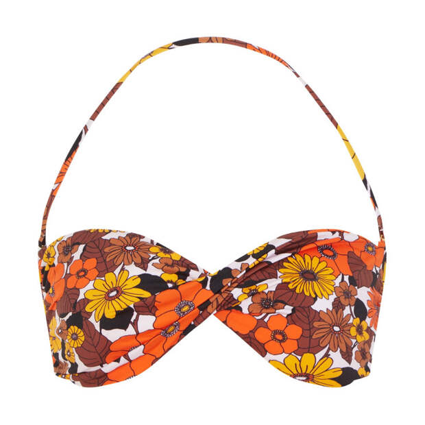 То же самое можно сказать и про модные цветочные орнаменты. В этом сезоне подиум захватили две тенденции: романтичные флористические принты и винтажный хиппи-шик. Такие орнаменты сами по себе являются мощным акцентом, который не стоит перебивать сложным кроем. В то же время цветочные ретро-принты отлично сосуществуют с винтажными фасонами — даже самыми радикальными и непривычными. Флористический принт будет одинаково хорошо выглядеть и на купальнике с завышенной талией, и на модели с косточками.