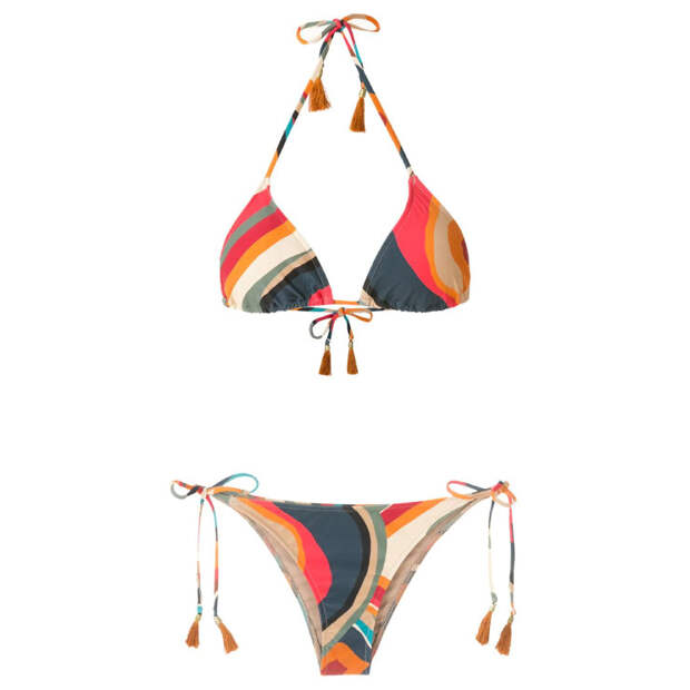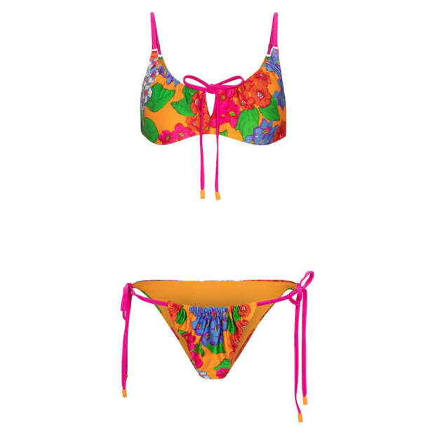 Модная ностальгия отчетливо прослеживается и в фасонах, и в спринтах купальников. Отличной альтернативой слитным купальникам станут миниатюрные бикини на завязках с косточками или без. Ретро-силуэты отсылают нас одновременно и к 1960-м, и к 1980-м. Две модные эпохи, популяризовавшие кокетливый раздельный купальник, нашли свое отражение в весенне-летних коллекциях этого года.