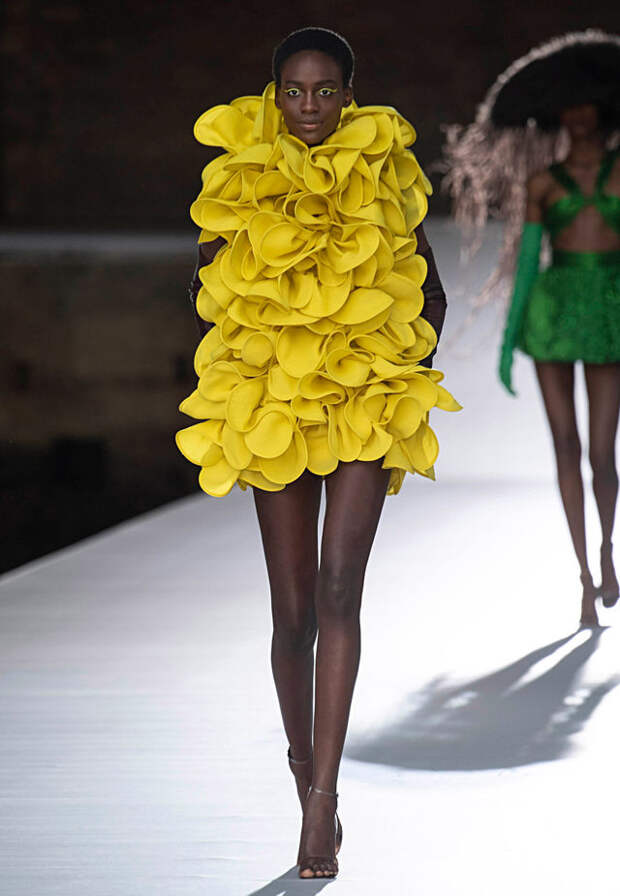 Они удивительно красиво покачивались при каждом движении моделей — но при своих размерах и яркости ни капли не отвлекали внимание от других элементов образа.