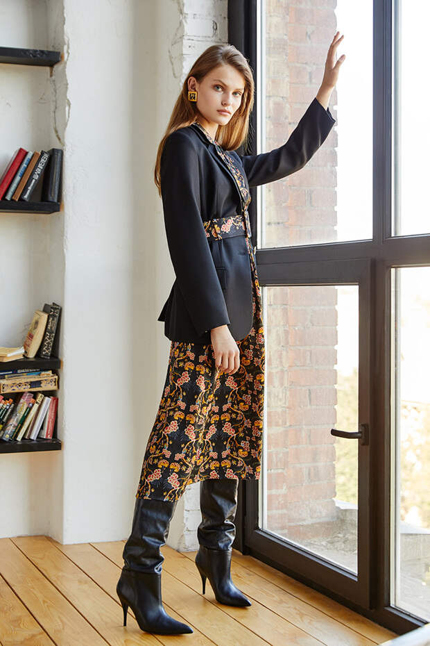 Отправной точкой для создания осенне-зимней коллекции стали 80-е, один из главных трендов приближающегося сезона: культовые силуэты, принты и стилистические приемы родом из 1980-х, вдохновленные образом неповторимой Синди Кроуфорд. Здесь и костюмы-двойки с подплечниками, и объемные свитера, и структурные пальто, и жаккардовые комплекты с геометричным принтом, и брюки-бананы, и легинсы, и мини-юбки с широкими ремнями.