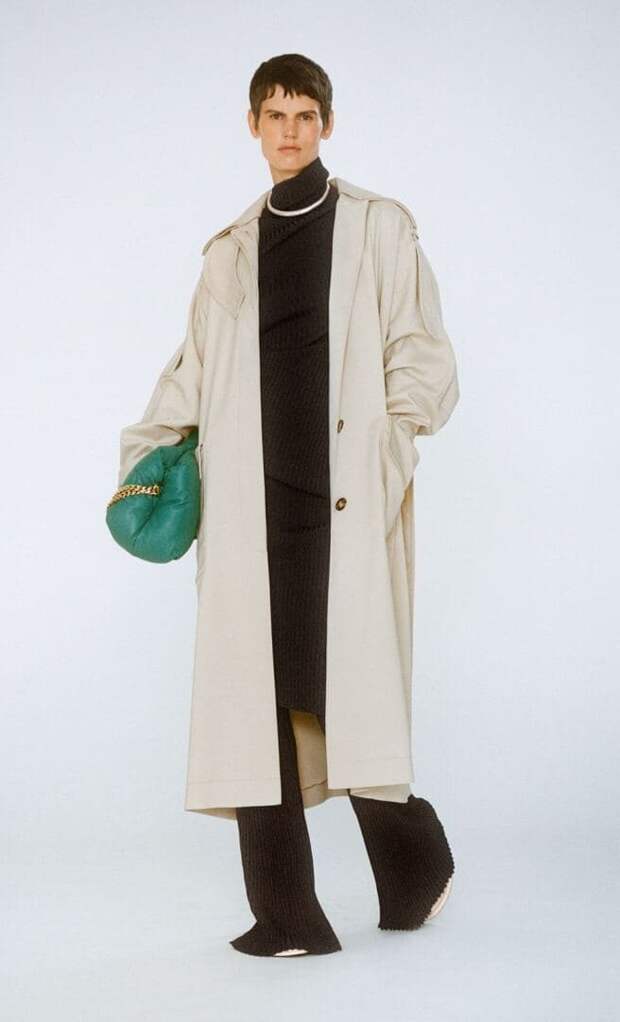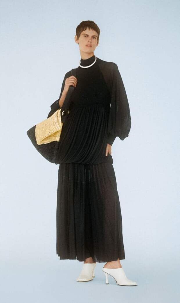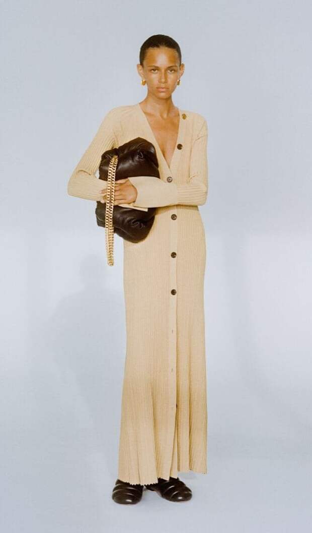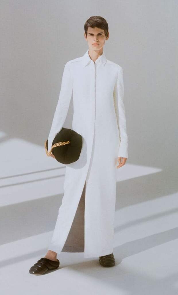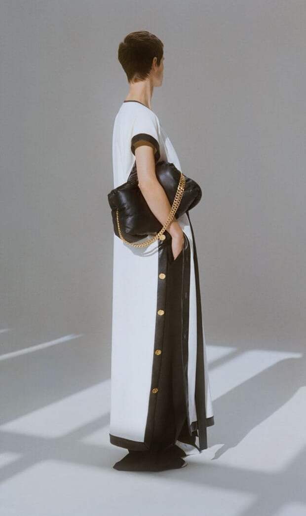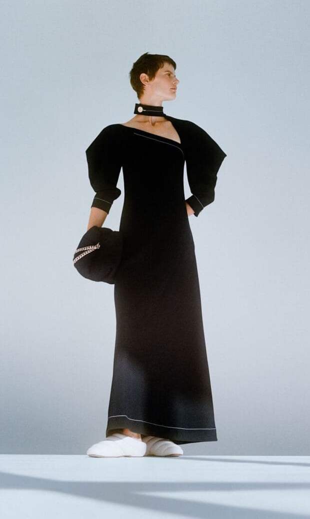 Как и многие коллеги, Джек Макаллоу и Лазаро Эрнандес сделали ставку на удобство — все же последствия затянувшегося карантина сказываются на всех. Впрочем, они решили сделать это куда изящнее большинства. Вы не увидите в их коллекции никаких джоггеров, пижам и халатов. Зато здесь есть трикотажные костюмы, объемные макси-платья и мягкие балетки на плоском ходу. По мнению дизайнеров, в феврале, когда коллекция появится в продаже, всем уже захочется выйти на улицы и нарядиться. Может, не так, как до пандемии — но уж точно не в пижамы и "треники". Длина макси, объем и обувь без каблуков — "три кита", на которых стоит новая коллекция дизайнерского дуэта. По их признанию, мини и каблуки ассоциируются с вечеринкой — а их в ближайшее время не предвидится. А от облегающих силуэтов они отказались, потому что в жизни сейчас и без того хватает ограничений. И хотя в паре образов все же мелькнули мюли на шпильке, главной парой обуви здесь стали "дутые" черные балетки — нечто среднее между домашними тапочками и зимними сапожками moon boots. А еще ботфорты без каблука в белом и черном оттенках.