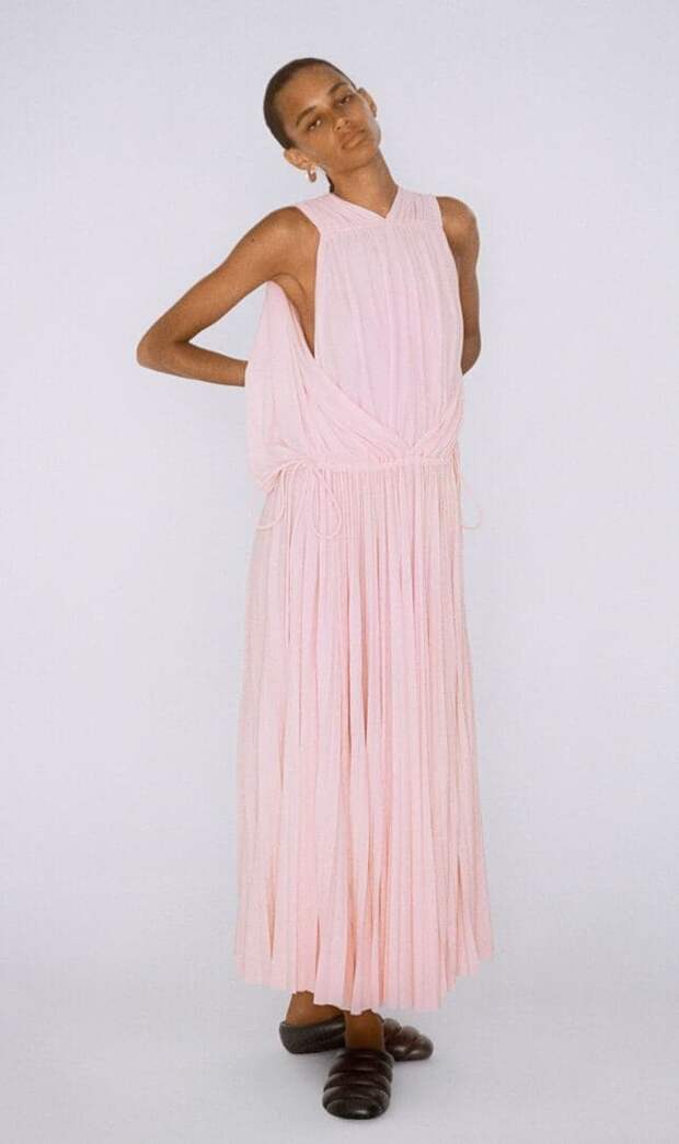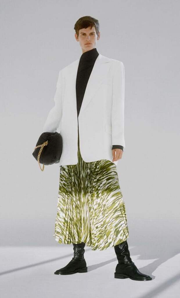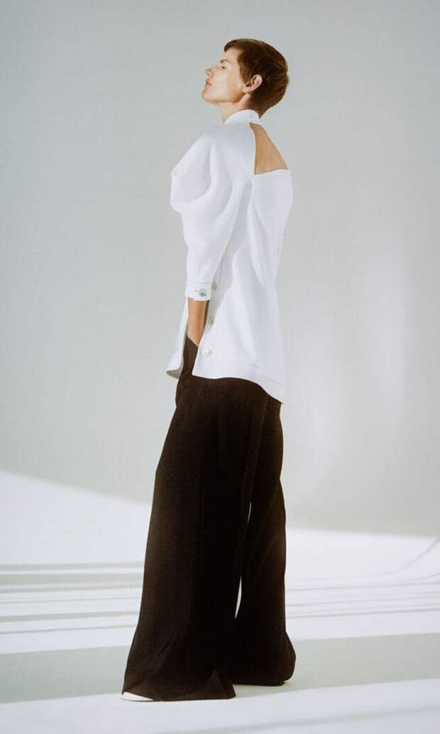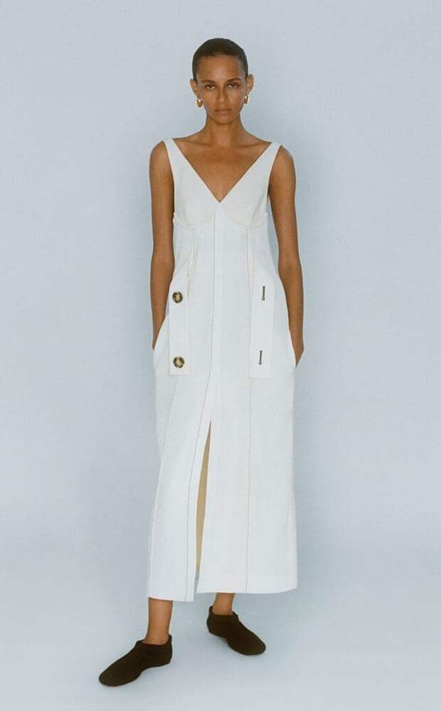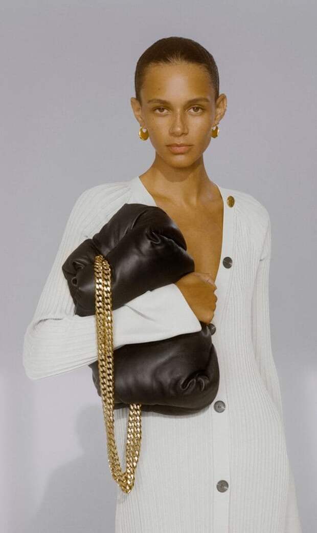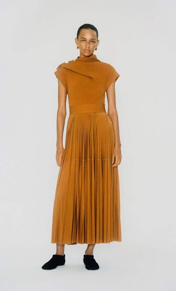 Как и многие коллеги, Джек Макаллоу и Лазаро Эрнандес сделали ставку на удобство — все же последствия затянувшегося карантина сказываются на всех. Впрочем, они решили сделать это куда изящнее большинства. Вы не увидите в их коллекции никаких джоггеров, пижам и халатов. Зато здесь есть трикотажные костюмы, объемные макси-платья и мягкие балетки на плоском ходу. По мнению дизайнеров, в феврале, когда коллекция появится в продаже, всем уже захочется выйти на улицы и нарядиться. Может, не так, как до пандемии — но уж точно не в пижамы и "треники". Длина макси, объем и обувь без каблуков — "три кита", на которых стоит новая коллекция дизайнерского дуэта. По их признанию, мини и каблуки ассоциируются с вечеринкой — а их в ближайшее время не предвидится. А от облегающих силуэтов они отказались, потому что в жизни сейчас и без того хватает ограничений. И хотя в паре образов все же мелькнули мюли на шпильке, главной парой обуви здесь стали "дутые" черные балетки — нечто среднее между домашними тапочками и зимними сапожками moon boots. А еще ботфорты без каблука в белом и черном оттенках.
