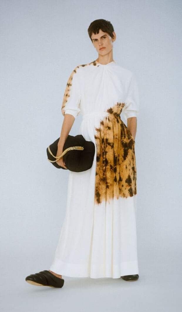 Из аксессуаров обращают на себя внимание такие же мягкие, как балетки, объемные сумки на цепочке. Они объединяют сразу два больших текущих тренда в одном: оверсайз-клатч и большую цепь. А еще дизайнеры решили пойти по пути устойчивого развития: большинство тканей в коллекции — остатки от предыдущих сезонов. А все принты (например, тай-дай на платьях и джинсах) они сделали сами вручную.Коллекция характерна еще и формой ее презентации. Не имея возможности сделать привычный для себя показ, Макаллоу и Эрнандес решили не снимать фэшн-фильм, а выпустить книгу. Кадры из лукбука вошли в том, посвященный Нью-Йорку — и соседствуют там с фото мегаполиса. В этом смысле они последовали примеру Майкла Корса, который тоже посвятил коллекцию своему любимому городу. Кажется, дизайнеры жутко соскучились по привычному ритму жизни. Да и мы все. А потому в веренице пижам, халатов и удобных брюк на резинке то и дело проскакивают платья в пайетках (у Proenza Schouler — платье-рубашка в длине макси) и признания в любви урбанистическому образу жизни. Находиться в тепле дома, конечно, прекрасно. Но мы уже заскучали по шуму, энергии и даже пробкам своих мегаполисов.