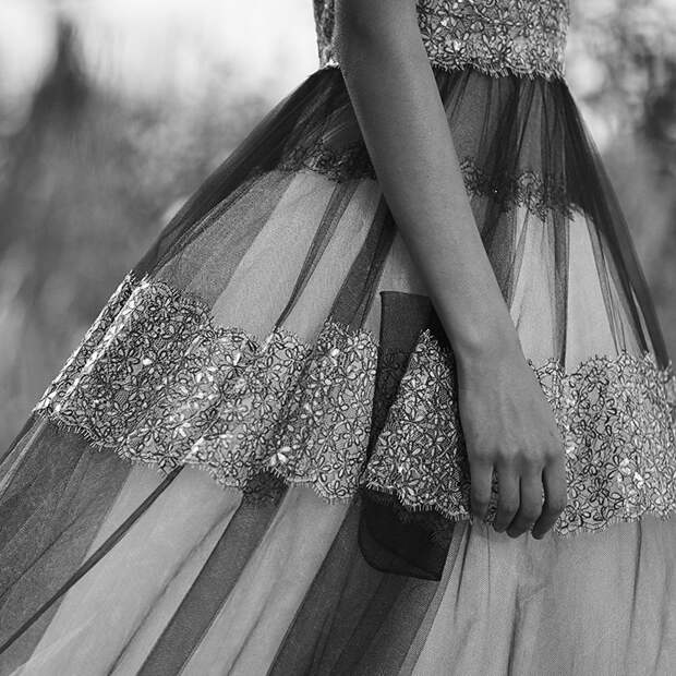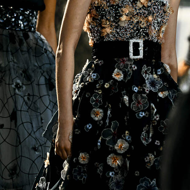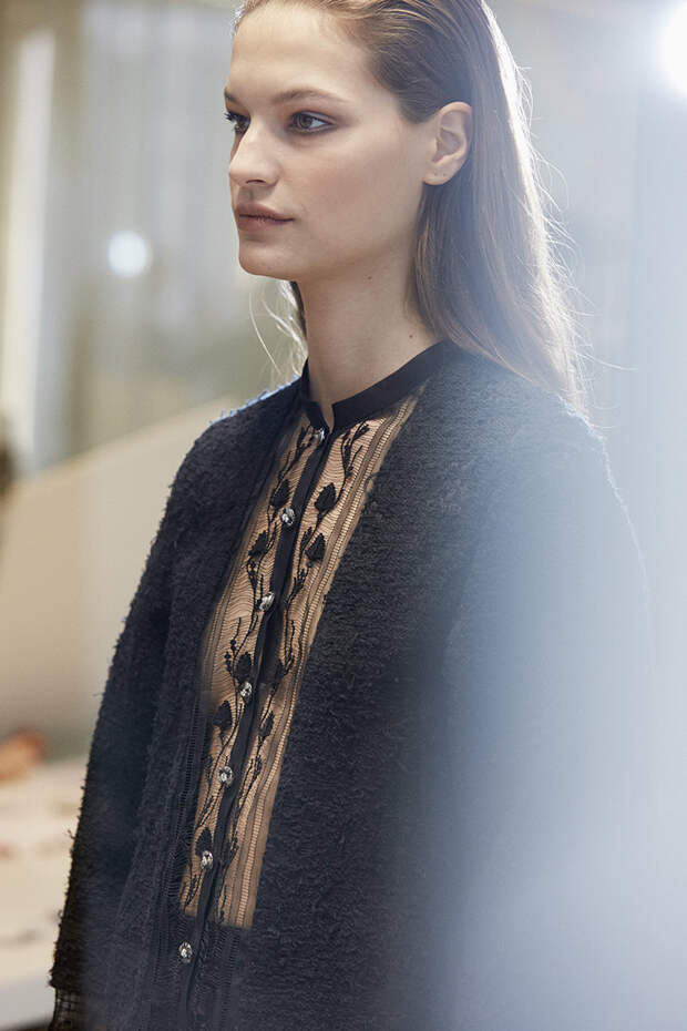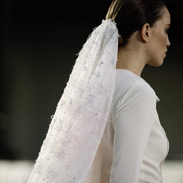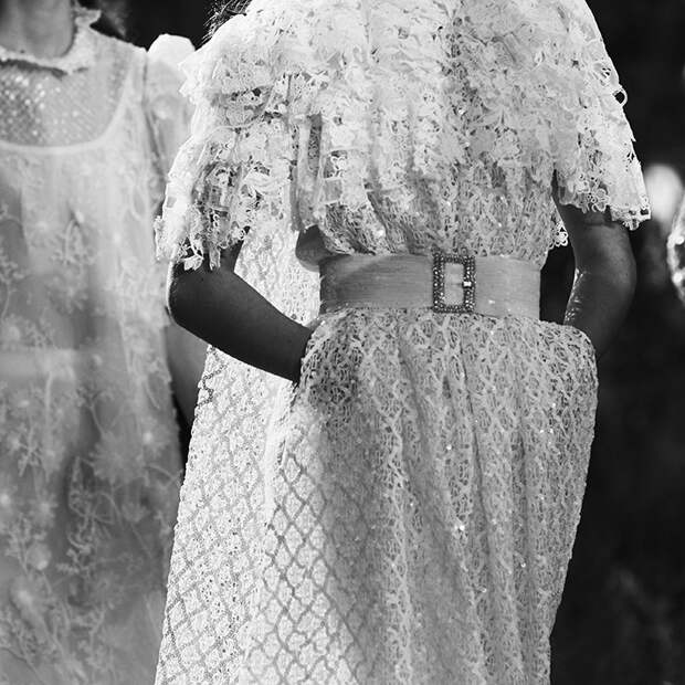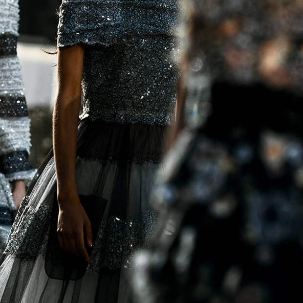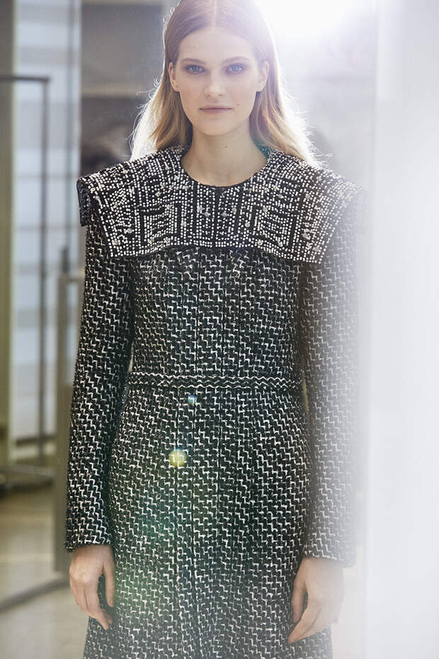 Для своего последнего кутюрного показа креативный директор Chanel Виржини Виар воссоздала в Гран-Пале сад Обазинского аббатства, где выросла и нашла свое призвание мадемуазель Шанель. Модели ходили по цветущим аллеям в платьях-рубашках с отложными воротничками и белоснежными манжетами, как у примерных школьниц прошлого, в свободных блузах послушниц монастыря и, конечно, строгих твидовых костюмах.