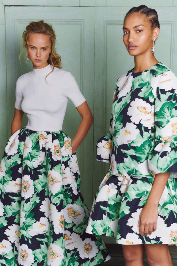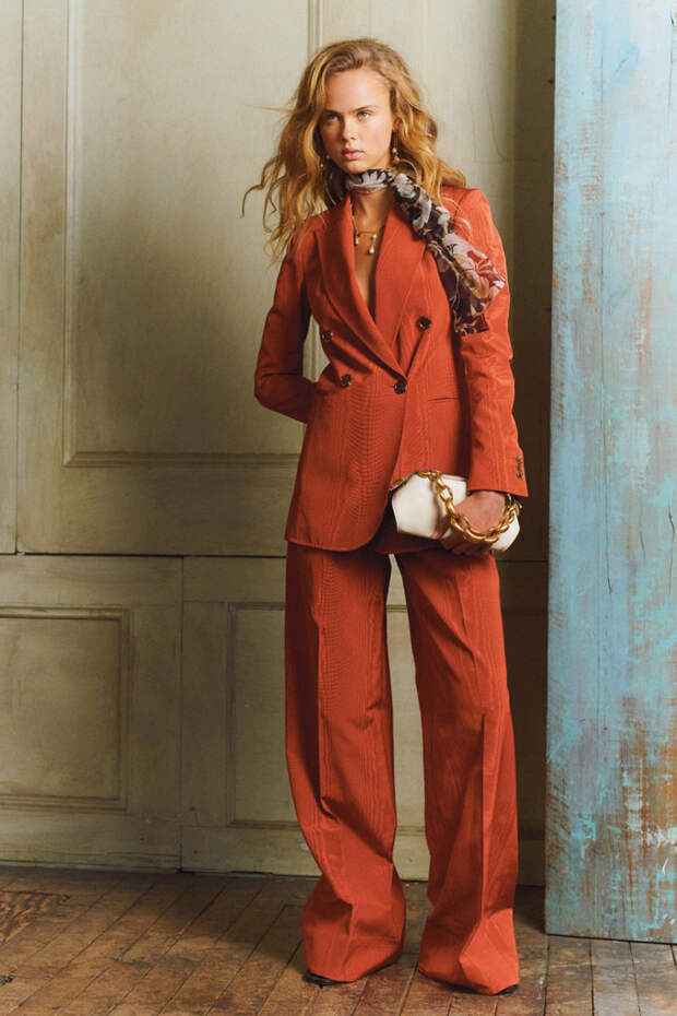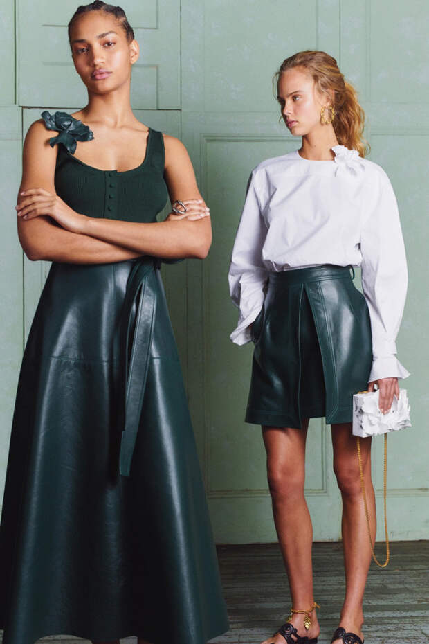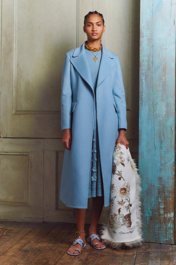 Дизайнеры Oscar de la Renta Лора Ким и Фернандо Гарсия в предосенней коллекции Pre-Fall 2020 продумали до мелочей гардероб светской девушки, которая много путешествует, активно работает и в свободное время посещает званые ужины. На каждый день в ней найдется идеальный брючный костюм в стиле 70-х карамельного оттенка, кожаные шорты и лазурное классическое пальто.