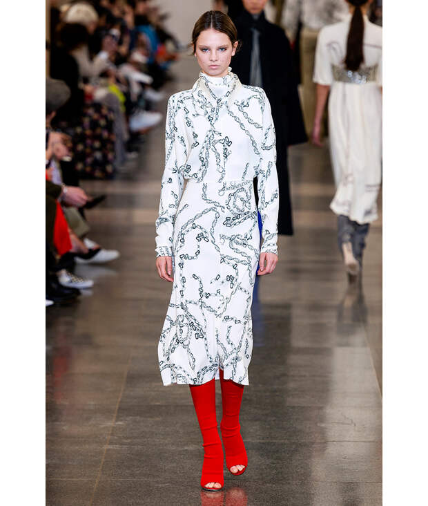 Похоже, избавившись от оков гендерного рабства, мы попали в новое, куда более fashion-ориентированное. Запустилась цепная реакция уже давно, и ее результаты мы наблюдаем не первый сезон. Так что если вы все еще не обзавелись массивным колье в духе 90-х, которое можно носить и с белой футболкой, и с платьем-футляром, и с кожаными брюками, то теперь время точно наступило. Справедливости ради скажем: некоторая свобода выбора у нас все же осталась – так много вариантов использования орудия угнетения придумали дизайнеры. Тут и пастельные платья-туники Tom Ford, держащиеся на тяжелых тройных «бретельках», и сумки с гирляндами, и даже платья Victoria Beckham, где вместо реальных цепей – принты со звеньями.