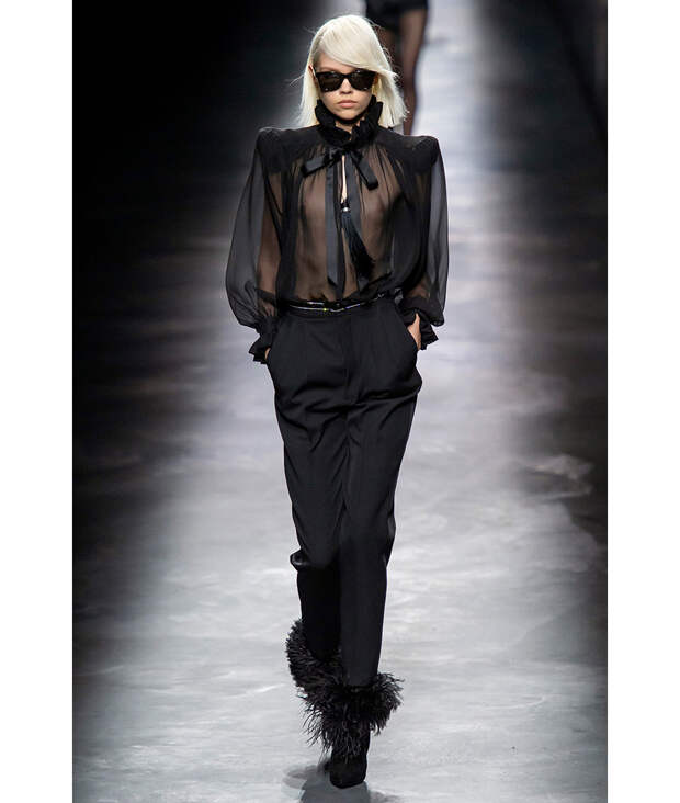 Причем и в повседневно-романтичной версии Марии Грации Кьюри из Dior, и в агрессивной ультрафуксии Dolce & Gabbana, и в эротических фантазиях Энтони Ваккарелло из Saint Laurent. Но наиболее изящно с ним обошелся Алессандро Микеле из Gucci: брюки в полоску с экстремально высокой талией, почти превращающиеся в комбинезон с бюстье, он соединил с шелковой рубашкой с кружевными манжетами и галстуком-манишкой. И да, этот образ был показан на мужской модели, но ведь у нас, как и у дизайнера, давно нет никаких предрассудков.Чувство локтя