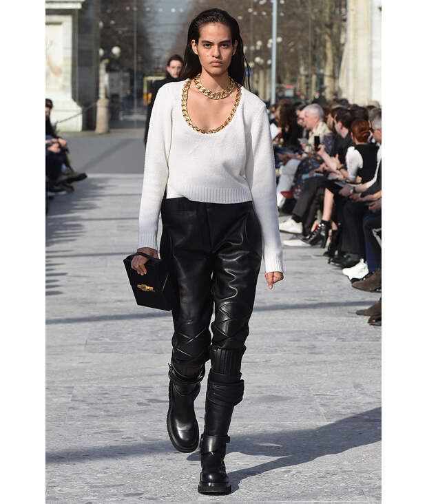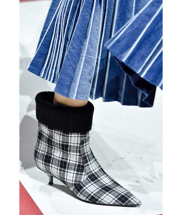 Ботильоны до щиколотки или чуть-чуть выше в очередной раз выступают в роли универсальных солдат. Летом мы носили их с легкими цветочными платьями, а осенью заправляем в них узкие брюки по заветам Николя Жескьера из Louis Vuitton или соединяем со строгими миди, как предлагает Миучча Прада. Варианты в этом сезоне в основном предлагаются брутальные – с массивными подошвами и тяжелыми фигурными каблуками. Впрочем, у Dior и Balmain можно отыскать вполне женственные модели с зауженным носом и изящными kitten heels.