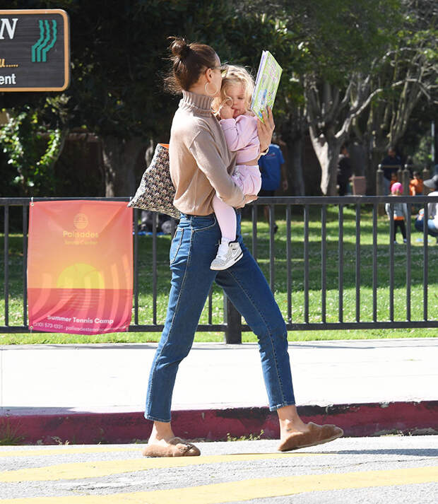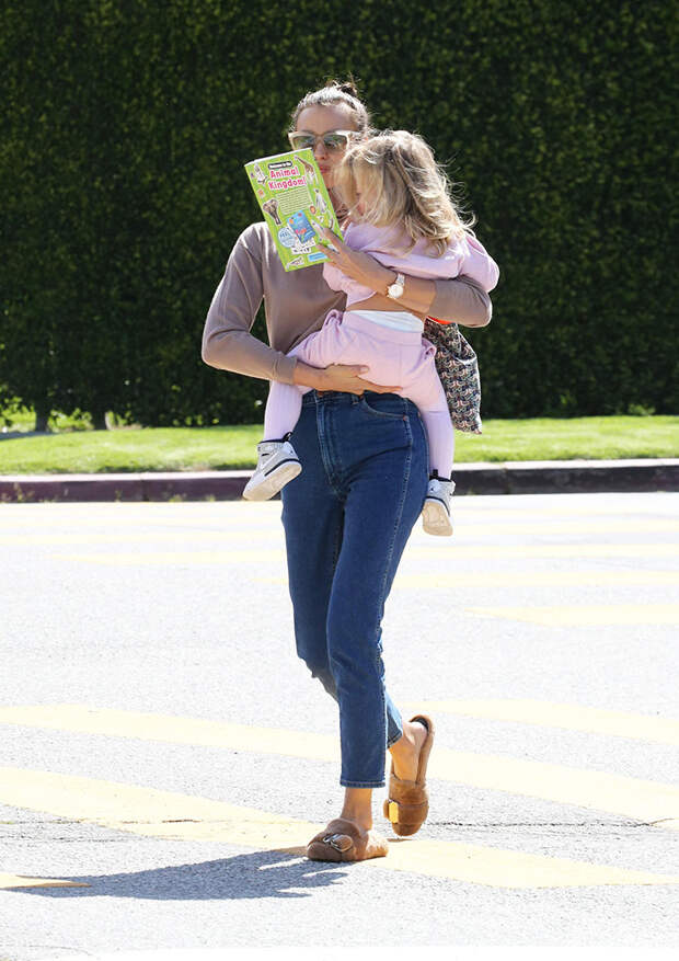 Ирина Шейк в этом году пропустила Каннский кинофестиваль, но, кажется, вовсе об этом не жалеет. Вместо вечеринок на Лазурном берегу и прогулок по красной дорожке в Versace топ-модель проводит время с двухлетней дочкой Леей. Папарацци заметили их во время прогулки в одном из парков в Лос-Анджелесе. Как и полагается для активного времяпрепровождения, Ирина выбрала стиль кэжуал: джинсы, свитер с высоким горлом и меховые тапочки.