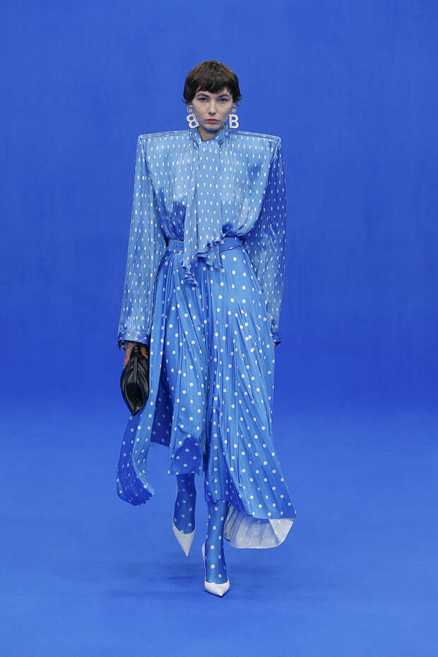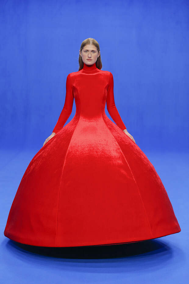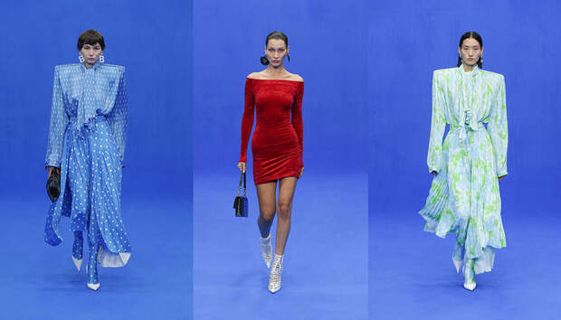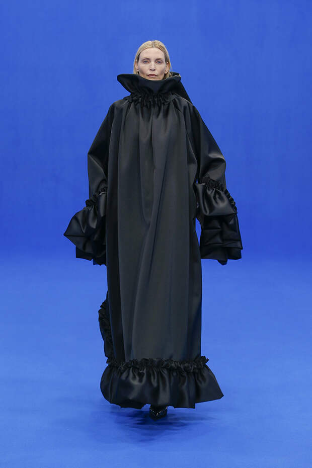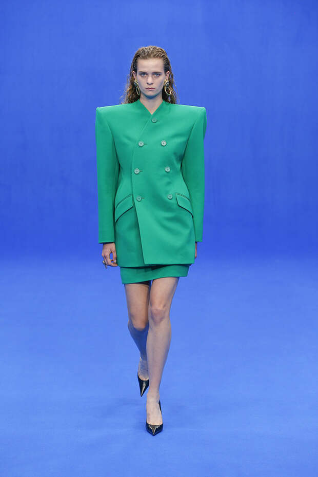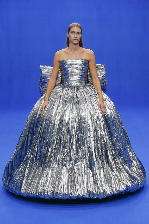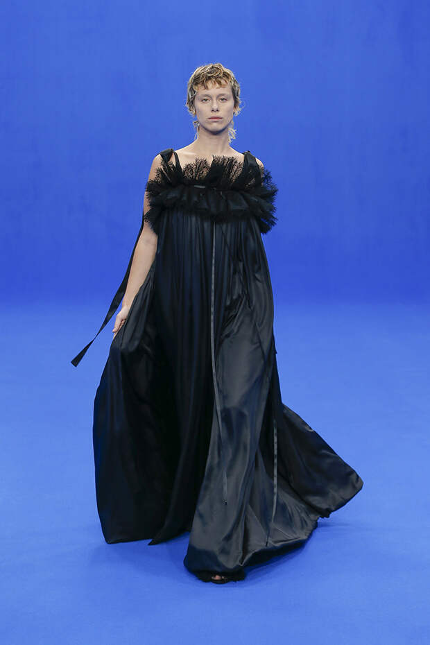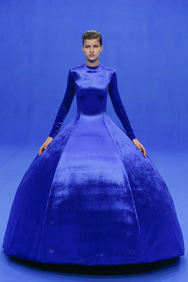 Да и куртки с поднятыми на уровень ушей плечами вряд ли способны кого-то скандализировать. Весенняя коллекция точно не войдет в число самых громких и обсуждаемых работ Гвасалии — но не забывайте, что практически весь этот сезон проходит под слоганом new normal. То есть мы снова в поисках красоты присматриваемся не к чрезмерному, а к обычному, непримечательному — с чего дизайнер свой взлет и начинал.Самыми эффектными выходами этого показа стали яркие велюровые платья — мини для вечеринок и длинные, в пол, с огромными, как у принцесс, юбками на кринолине. Последние очень хочется увидеть в действии где-то за пределами подиума: на моделях выглядят они впечатляюще, так что ждем, когда какая-нибудь отважная звезда решится надеть одно из них на ковровую дорожку.