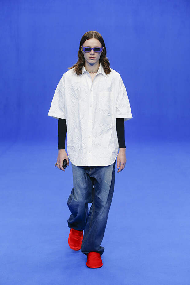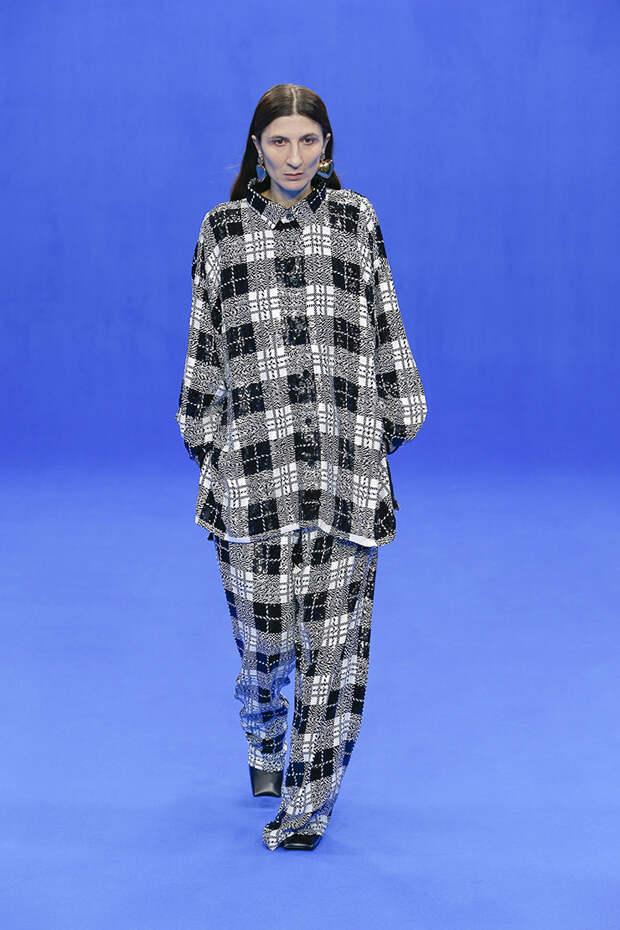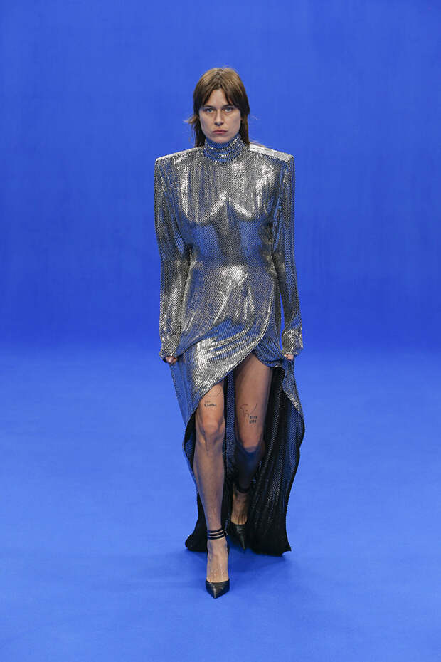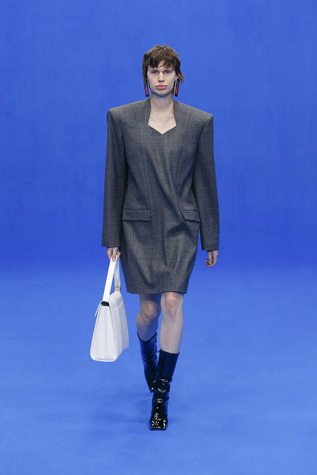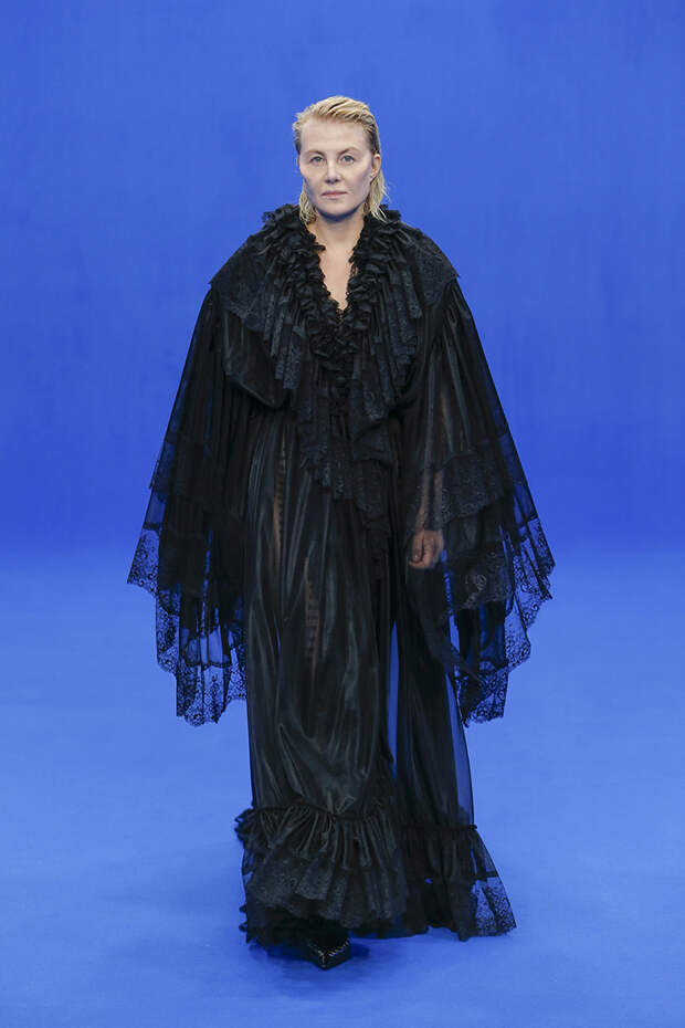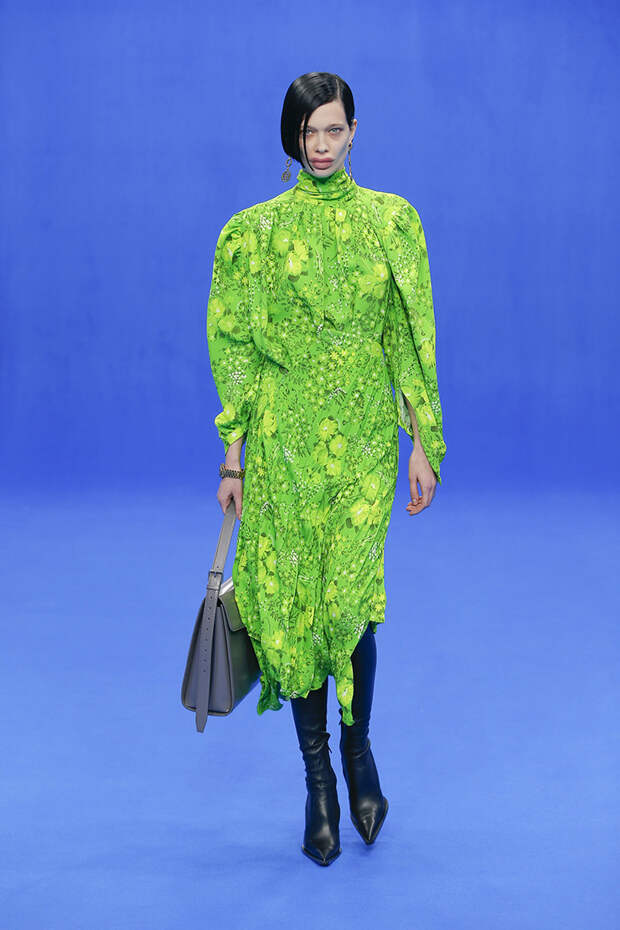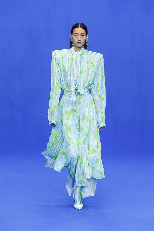 Да и куртки с поднятыми на уровень ушей плечами вряд ли способны кого-то скандализировать. Весенняя коллекция точно не войдет в число самых громких и обсуждаемых работ Гвасалии — но не забывайте, что практически весь этот сезон проходит под слоганом new normal. То есть мы снова в поисках красоты присматриваемся не к чрезмерному, а к обычному, непримечательному — с чего дизайнер свой взлет и начинал.Самыми эффектными выходами этого показа стали яркие велюровые платья — мини для вечеринок и длинные, в пол, с огромными, как у принцесс, юбками на кринолине. Последние очень хочется увидеть в действии где-то за пределами подиума: на моделях выглядят они впечатляюще, так что ждем, когда какая-нибудь отважная звезда решится надеть одно из них на ковровую дорожку.
