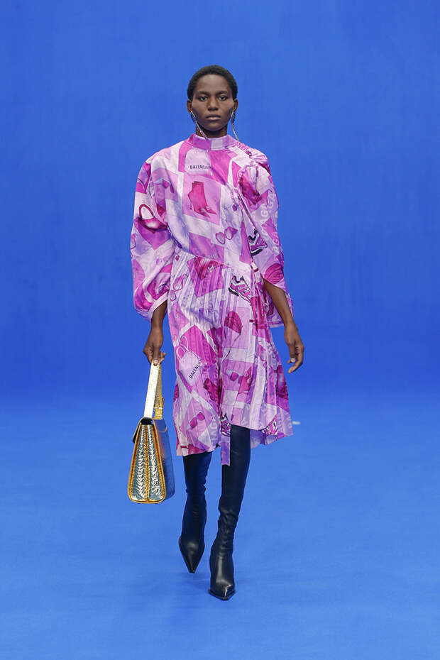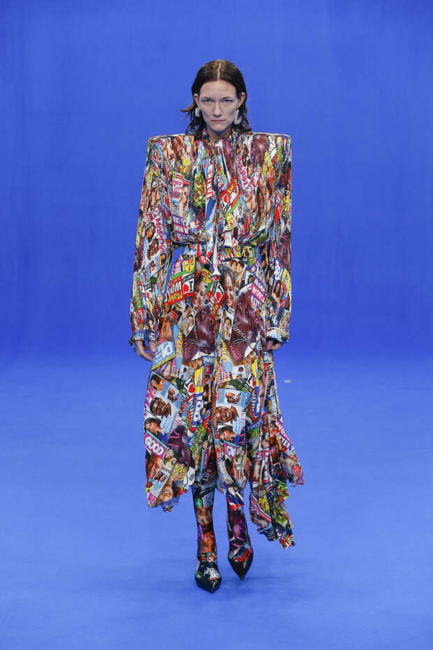 Несмотря на надписи "18+" и X-Rated на паре топов, ничем таким, чего мы еще не видели, Демна Гвасалия шокировать публику не стал. Платья с принтами с журнальных обложек в сочетании с сумочками Hello Kitty! удивляют куда меньше, чем когда-то удивляли красочные лосины, переходящие в ботфорты, или гвасалиевский ugly chic, в котором ugly было больше, чем шика.