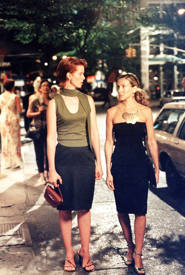 Да, в то самое время, когда зрители по всему миру сидели у телеэкранов в томительном ожидании новых серий "Секса в большом городе". Поэтому нет ничего удивительного в том, что образы Керри, Саманты, Шарлотты и Миранды того времени сейчас кажутся такими стильными.И нам до сих пор есть чему поучиться у любимых героинь. Например, как изящно носить "плечистые" жакеты. Или как безупречно выглядеть в минималистичном платье-комбинации (особенной любовью к ним отметилась Керри Брэдшоу). Или, скажем, как правильно подобрать к образу миниатюрную сумку Fendi Baguette или "седло" Dior — обе модели снова бьют все рекорды популярности. Саманта Джонс в одном из эпизодов появилась в самом настоящем комбо актуальных модных трендов: рубашке поверх водолазки и кожаных брюках — этот образ можно цитировать буквально дословно. Не слишком изменились с тех пор и шелковые юбки, которые любили все четыре подруги — только теперь мы носим их не с топами или рубашками, а с трикотажными свитерами и водолазками крупной вязки. Ну а обувной гардероб Керри Брэдшоу до сих пор является мечтой любой модницы: сложно не позавидовать такой обширной коллекции дизайнерских туфель, которые ничуть не растеряли своей актуальности.