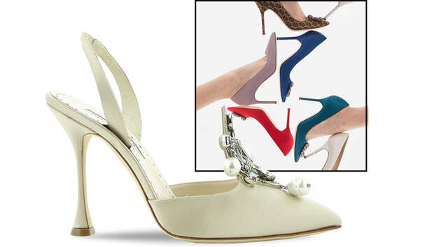 Маноло Бланик известен своей любовью к искусной отделке и вышивке, что отразилось и на коллекции нового сезона. В этот раз он обратился к моде эпохи Барокко, а именно жемчужным украшениям того периода, большинство из которых хранятся сегодня в лондонских музеях. Pavesa – наша любимая модель барочной линейки. Она доступна в атласе разных оттенков и декорирована искусственными жемчужинами.