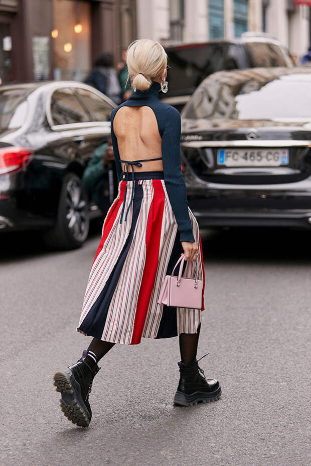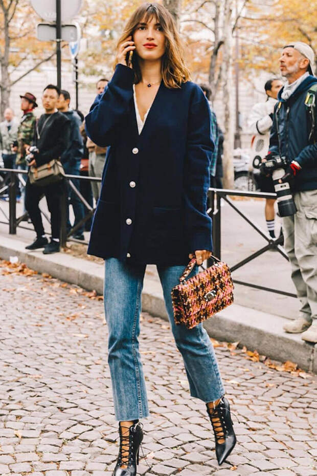 Отлично будут смотреться юбки и приталенные платья А-силуэта. А еще лишний объем помогут скрыть свитеры до середины бедра и удлиненные блейзеры — самыми "худящими" станут модели в темной палитре. Мы собрали для вас несколько вдохновляющих примеров — уверены, они пригодятся вам при выборе "правильных" вещей и сочетаний.