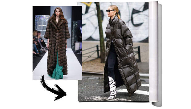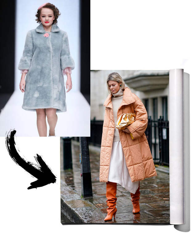 И хотя из попыток сочетать несочетаемое иногда выходят любопытные эксперименты, этот — явно не из их числа. Мало того, что это смотрится ужасно старомодно, такой пуховик еще и попросту неудобен. Под него нереально надеть жакет или плотный трикотажный джемпер, без которых не обойтись суровой зимой. Про многослойные образы мы вообще промолчим. Снова советуем выбирать прямые оверсайз-куртки: между верхней одеждой и вами должно быть достаточно места, чтобы надеть что-то более теплое, чем платье-футляр.Верхняя одежда с коротким рукавом