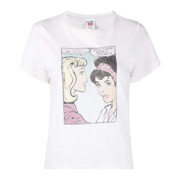 Пин-ап 1950-х, поп-арт 1960-х, хиппи-шик 1970-х — все эти веяния нашли свое отражение в новых коллекциях. На замену футуристичным принтам пришли комикс-стрипы полувековой давности — такие футболки можно найти у бренда Re/Done, фокусирующегося на винтажной стилистике.