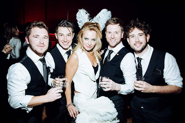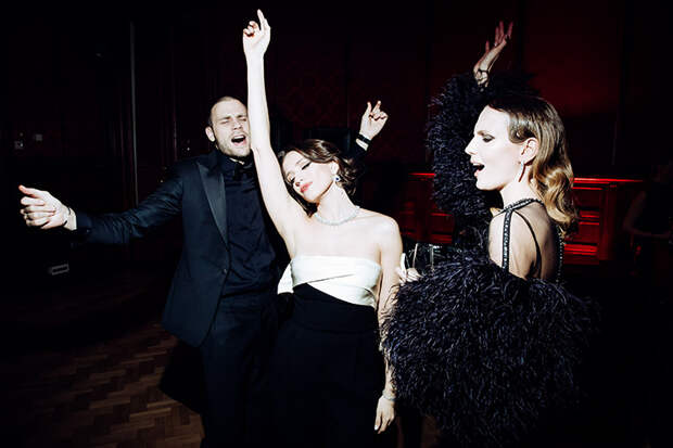 Начинался вечер с джазовых хитов в исполнении Ани Чиповской при участии оркестра под управлением композитора Бориса Фрумкина, затем музыкальную эстафету приняли англичане из пати-бенда The Fly Boyz (впервые в России) и группа «Саботаж». После культурной программы ужин закономерно перетек в танцы. Гости дружно переместились в соседний Красный зал отеля, где их уже ждал разогретый танцпол бара Алексея Киселева The Kisa. Как и полагается для вечеринки года, все присутствующие забыли о каблуках, о том, что на календаре будний день, и отплясывали под зажигательные сеты DJ Ginzburg.