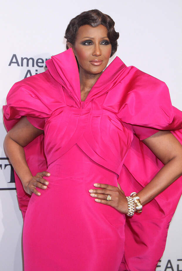 Минувшим вечером в Нью-Йорке прошел традиционный благотворительный вечер Элтона Джона, посвященный борьбе со СПИДом. В мероприятии приняли участие многие знаменитости, была в числе гостей и Иман. 63-летняя топ-модель затмила всех, появившись на красной дорожке в эффектном платье оттенка фуксия.