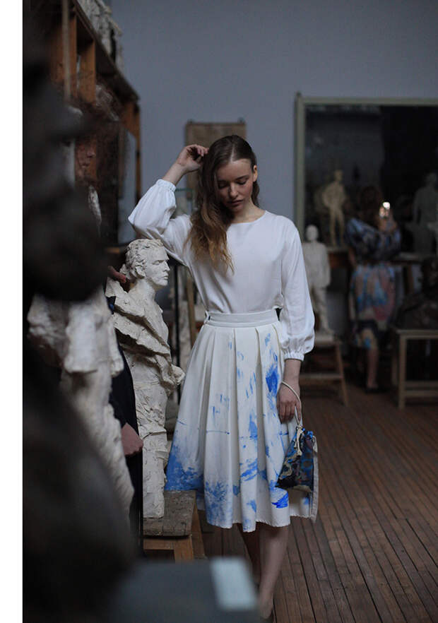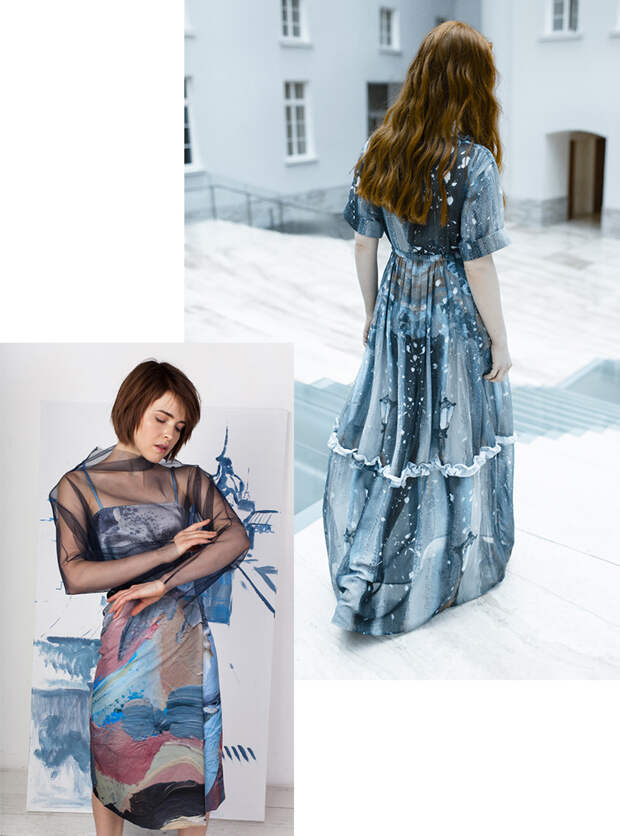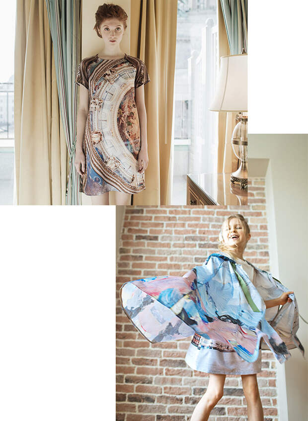 Главный источник вдохновения для меня – Петербург! Я живу здесь уже 10 лет, но мне нравится находить на улицах города что-то новое или, наоборот, заряжаться моими «местами силы». Люблю рассматривать детали архитектуры, посещать выставки и спектакли, наблюдать за жителями и туристами - все это особый мир, в котором никогда не бывает скучно. Работа над коллекцией продолжается несколько месяцев: поиск вдохновения, moodboard, эскизы, ткани, аксессуары… Обычно я вижу, как лучше использовать тот или иной принт в одежде (разместить его на платье во всю длину или замостить фрагмент на рукавах), но иногда бывает и так, что во время примерок мы меняем первоначальную задумку.