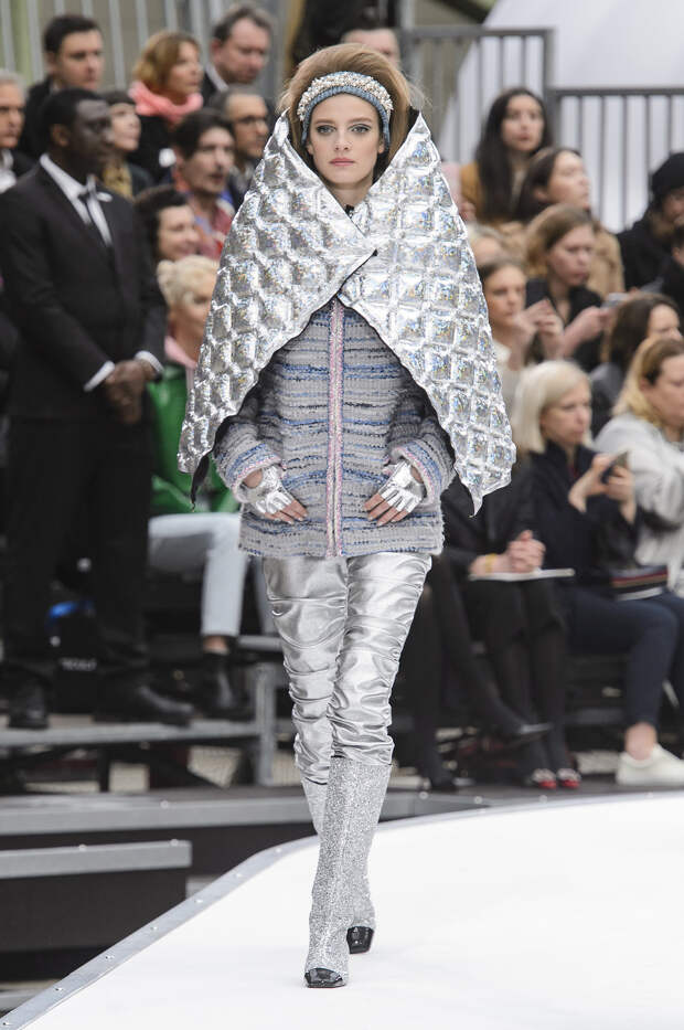 Карл Лагерфельд всегда славился масштабными задумками и безграничной фантазией. И когда ему стало немного тесно не Земле, он отправился прямиком в космос — и пригласил в это путешествие нас. Графичный макияж моделей, прически с начесом, А-образны юбки и сапожки на небольшом устойчивом каблуке явно отсылали к «космическим» показам 60-х, а вот металлизированные ткани (даже классический твид) и минималистичные рюкзаки вместо классических сумок-конвертов давали понять, что Кайзер на самом деле устремлен лишь в будущее. Центральной деталью показа была огромная ракета с логотипом Chanel — в финале она стала частью впечатляющего пиротехнического шоу, когда некоторым гостям даже казалось, что она вот-вот взлетит.