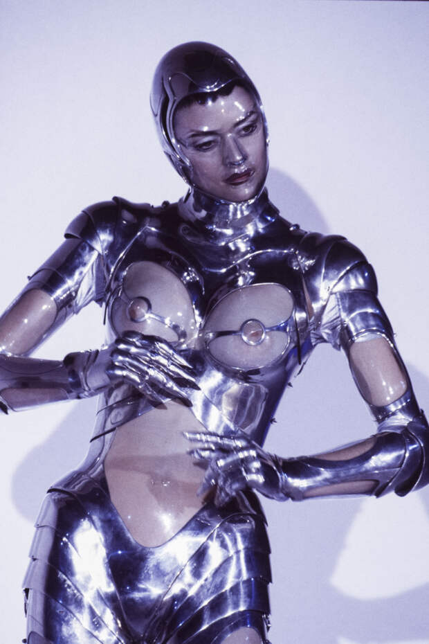 Тьерри Мюглер стал первым дизайнером, который космическую тему трактовал принципиально иным образом, чем его более старшие коллеги. Осенью 1995-го года он представил кутюрную коллекцию, в которой было несколько образов сексуальных киборгов — настоящих соблазнительниц межпланетного масштаба. Золотой корсет и серебряный костюм робота стали настолько культовыми образами, что впоследствии не раз появлялись в клипах и глянце даже годы спустя. Впоследствии несколько луков с того показа дизайнер даже повторил для тура Бейонсе I am... Sasha Fierce 2009 года.