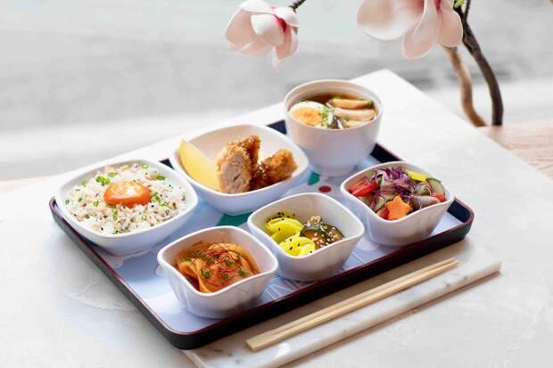 В рыбный сет добавили мисо-суп с вонголе, лососем и водорослями вакаме, а основной обед такой: жареный рис с креветками и кальмарами в устричном соусе фурикакэи и с маринованным желтком и тунец кацу в нори и панко с чесночно-лимонным соусом и тонкацу. Цена этого гастрономического приключения – 790 рублей.Адрес: Трубная, 21