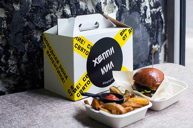 Никаких розовых сердечек и цветочков! Бар снаружи и внутри обклеят сигнальной лентой «Свободная зона от дня святого Валентина», барменов переоденут в футболки с анти-праздничными скетчами, а ровно в 21:00 за пульт встанет самый неромантичный диджей столицы. В «праздничном» меню предлагают собрать Хэппи Мил для взрослых : любой бургер из меню с картошкой, брендированное «средство индивидуальной защиты» и любимая игрушка на выбор из плётки, ошейника и наручников (и это уже навевает мысли о том, что вечер может оказаться не таким скучным)