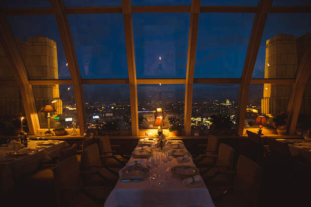 В «Восходе» — музыка и танцы: выступает Владимир Пресняков (13 февраля). Отсюда и стоимость – 5 000. Зато всех гостей в День влюблённых угощают клубничной Маргаритой. Самые романтичные столы — с видом на Кремль, но они далеко от сцены.