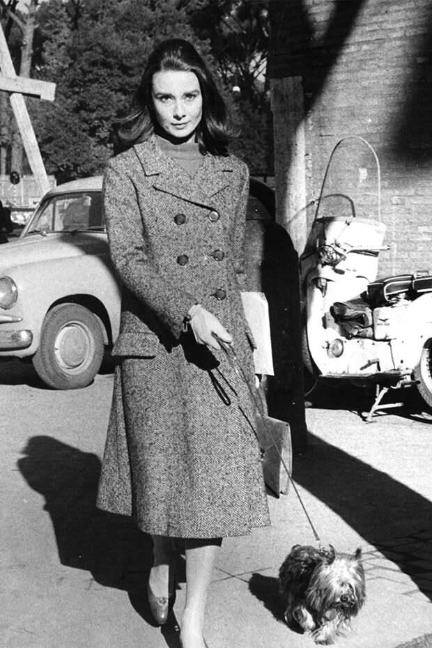 Одри Хепберн - это не только эталонные платья-футляры, романтичные юбки-солнце и строгие черные водолазки с жемчужными украшениями. Это также разнообразные пальто, которые сидели на актрисе просто безукоризненно. Яркие и сдержанные, двубортные и лишь с одним рядом крупных круглых пуговиц, однотонные и "гусиную лапку" - ей шли, кажется, любые вариации этого предмета гардероба.