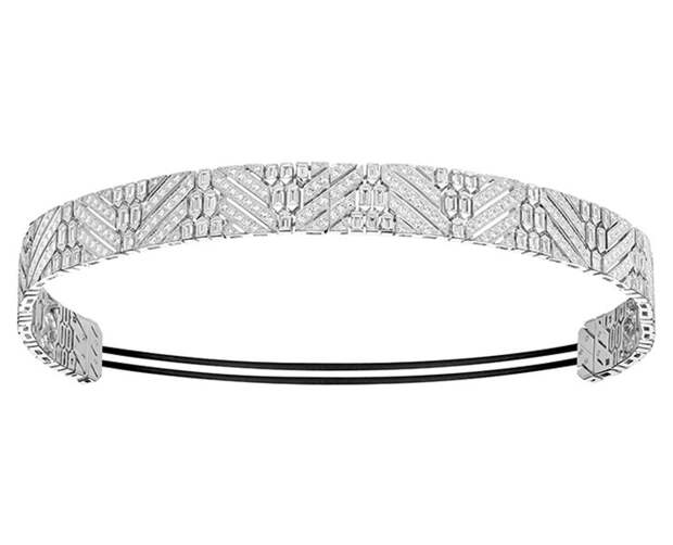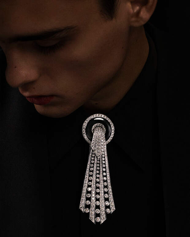 Следующая вариация на тему мужских аксессуаров — колье-пластрон Lavalliére Diamants. Оно превращается в чокер и булавки для воротника, которые сочетаются с такими же серьгами и кольцом. Продолжает тему "функциональности от-кутюр» повязка-бандо Ruban Diamants с бриллиантами багетной и круглой огранки. Украшение может стать диадемой или поясом на смокинг.