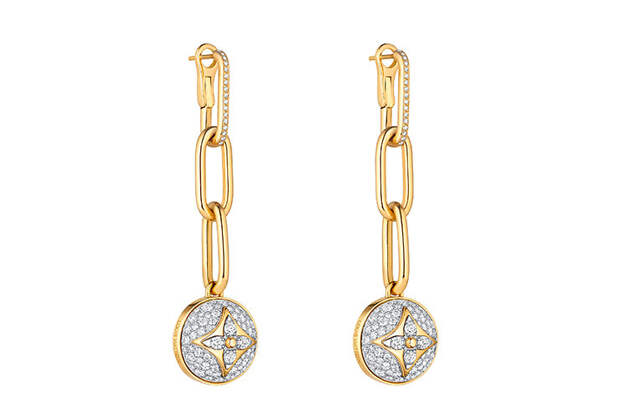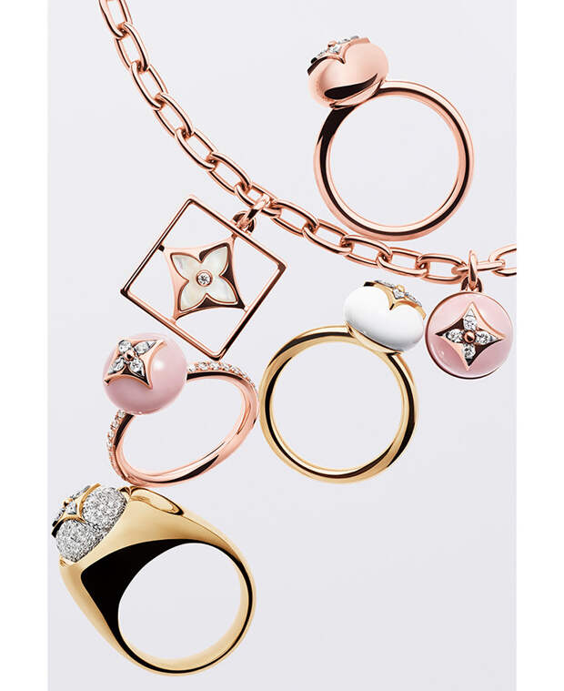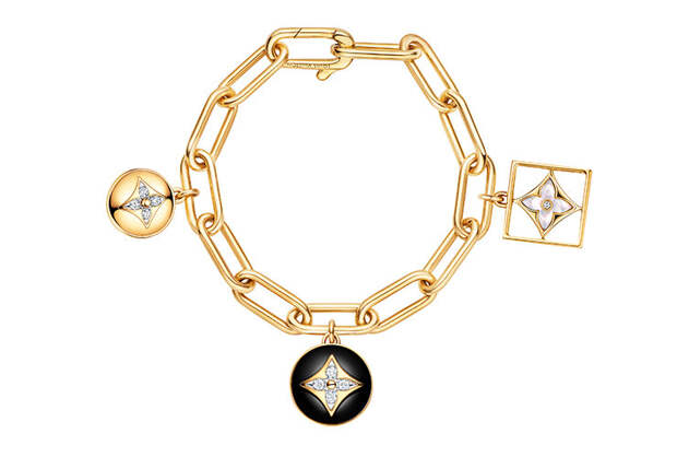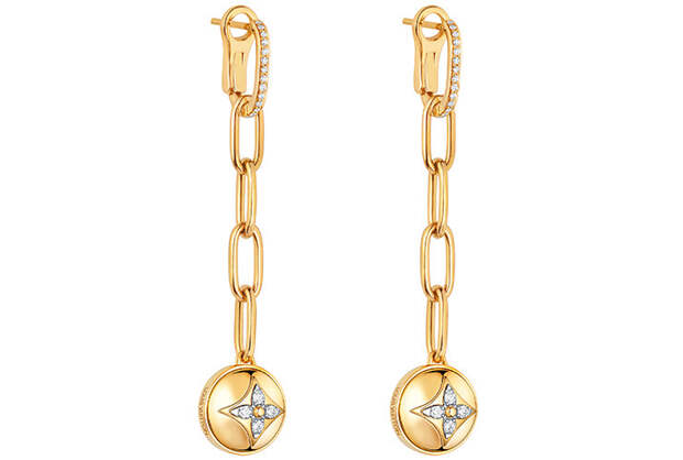 Звездообразный цветок, который Жорж Виттон придумал еще в 1896-м, из года в год "путешествует" по всем коллекциям Louis Vuitton - и это касается как одежды, так и аксессуаров. На этот раз драгоценный бутон распустился на украшениях - браслетах, подвесках, ожерельях и серьгах, усыпанных бриллиантами на розовом и желтом золоте.