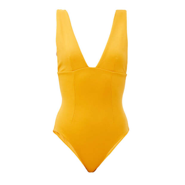 Лучший вариант для любого типа фигуры - минималистичное боди. Избегайте купальников с геометрическими рисунками или принтами - они визуально придают объем и вряд ли помогут скорректировать фигуру. Отдайте предпочтение однотонным вариантам, а если не хочется скучной базы, присмотритесь к ярким цветам: желтому, красному, неоново-зеленому. Выбирайте плотные материалы, которые подтянут фигуру. Уже несколько сезонов фаворитом фэшиониста остается боди с жатым эффектом от бренда Hunza G - они выглядят необычно и отлично подчеркивают фигуру. Откажитесь от модных разрезов, вставок и светоотражающих фактур - такие детали могут придать объем в ненужных местах и подчеркнуть недостатки. Обратите внимание, чтобы в купальнике присутствовали вертикальные линии: высокий вырез бедра, V-образное декольте или широкие вертикальные лямки - такие элементы визуально вытянут тело. Еще один бонус слитных купальников - многофункциональность. Их можно легко носить как на пляже, так и в качестве топа с повседневными образами.