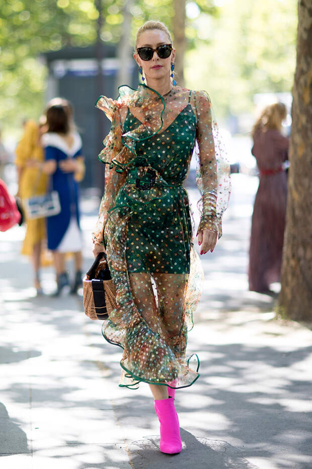 Неделя Высокой моды подошла к логическому заверешению. Минувшим вечером новые коллекции, а скорее произведения искусства, показали Valentino, Maison Margiela, Elie Saab, Zuhair Murad. Приглашенные fashionista рассредоточились по всему Парижу, украсив сложносочиненными яркими нарядами все авеню. Последние хроники стритстайла - гимн женственности, почти все без исключения девушки ради кутюра нарядилась в лучшие платья, сексуальные блузы с декольте, туфли на шпильках.