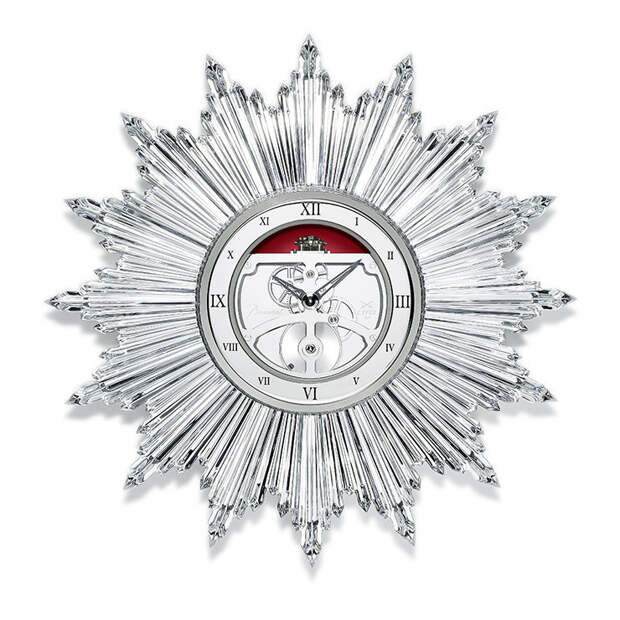Французский хрустальный бренд Baccarat перевыпустил один из своих главных бестселлеров – часы "Солнце" 1948 года, на которые Жоржа Шевалье вдохновил Версаль и "король-солнце" Людовик XIV. Прославилось творение Шевалье, когда в витрине бутика его увидел Артур Миллер и решил подарить жене – самой Мэрилин Монро. Под прозрачным циферблатом версии-2019 виден часовой механизм, созданный специально для Baccarat мануфактурой L’Épée 1839 – швейцарским производителем, работающим с Cartier, Vacheron Constantin и MB&F. Часы «Солнце» заводятся вручную, поэтому циферблат закреплен на петли, чтобы легко открываться для доступа к механизму.