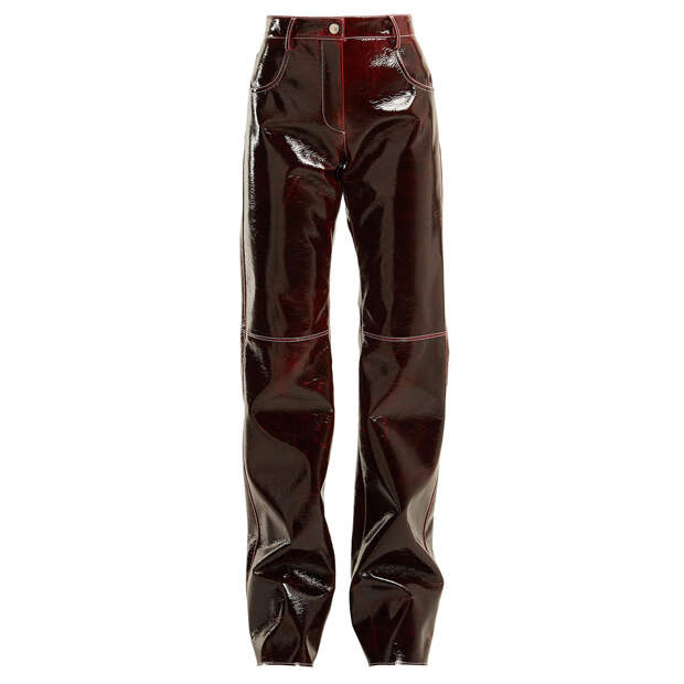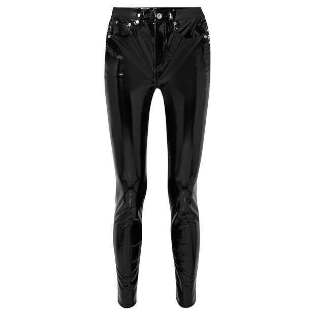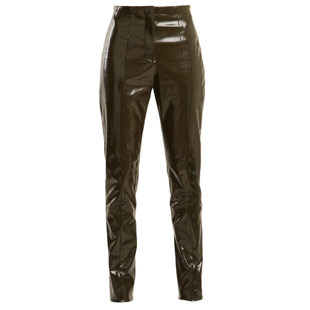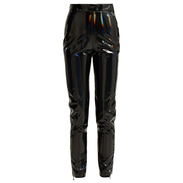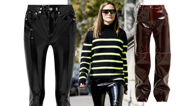 В этом году винил принято не только слушать (признайтесь, и вы мечтаете найти под елкой проигрыватель для пластинок), но и носить, причем в самых разнообразных вариациях: тренчи, юбки, платья, шорты, обувь и даже топы — все делают из этого материала. И все же самыми популярными из винила остаются брюки: они не боятся слякоти, которая сопровождает российский климат большую часть года, и всегда привлекают внимание к своей владелице.