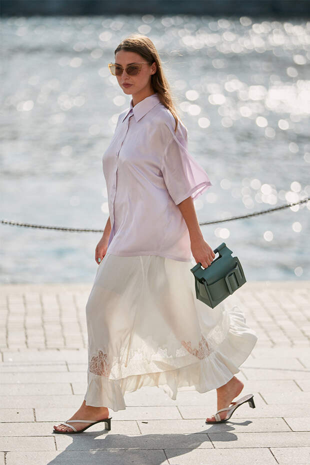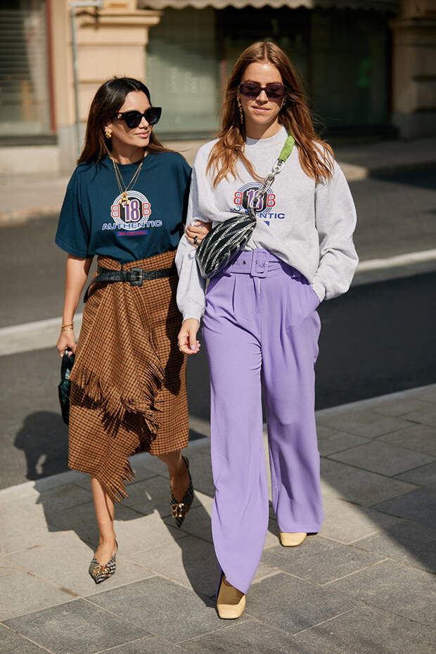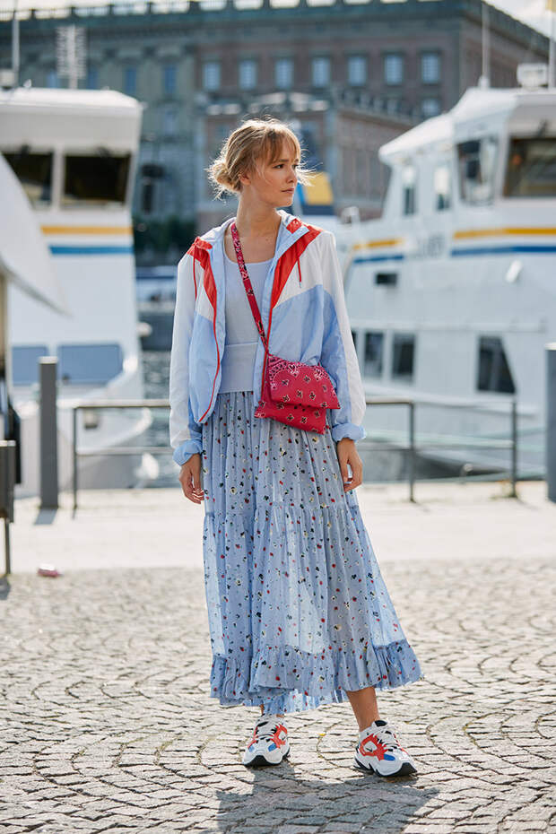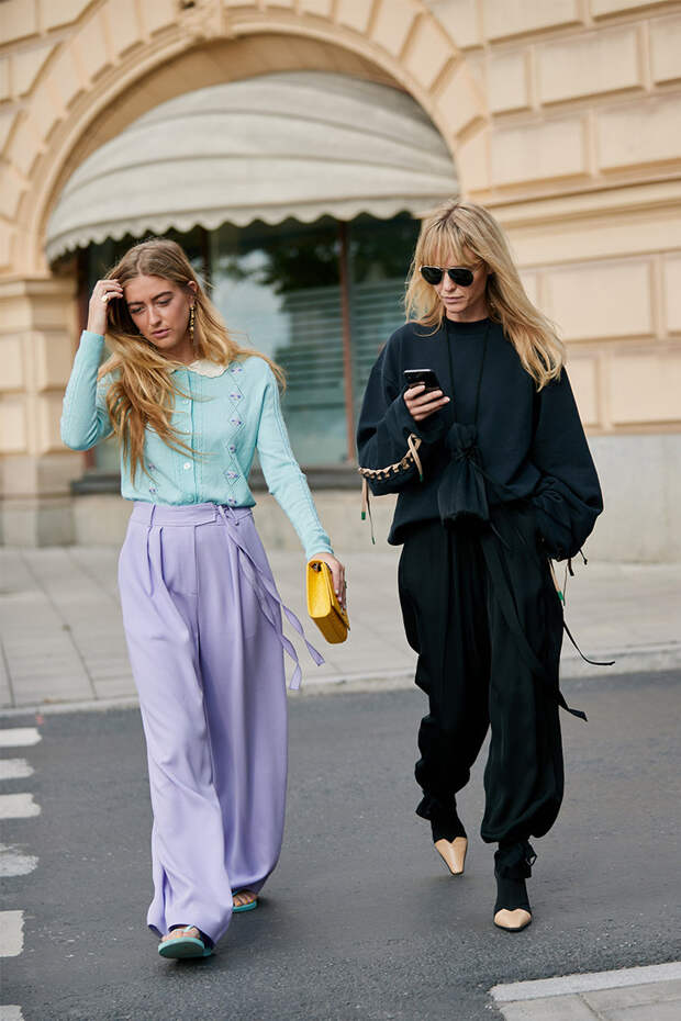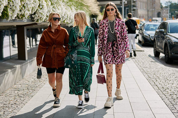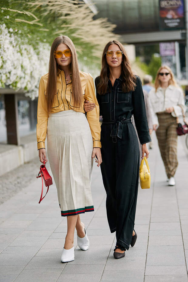 На второй день Недели моды в Стокгольме самые стильные девушки вновь покрасовались на улицах шведской столицы. И хотя приближается осень, модницы не собираются сменять яркие и почти летние наряды. Наоборот, они доказывают, что кроссовки, забавные сумки из бусин, белые тотал-луки, джинсовые костюмы, рубашки и брюки пастельных оттенков, разноцветные платья в пол и многое другое будет смотреться органично даже в холода.