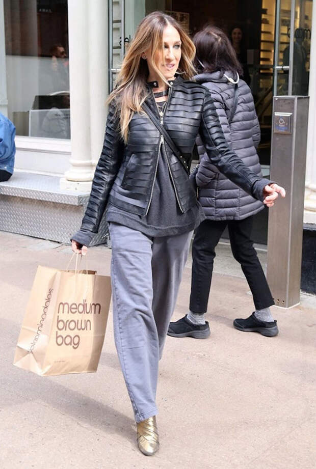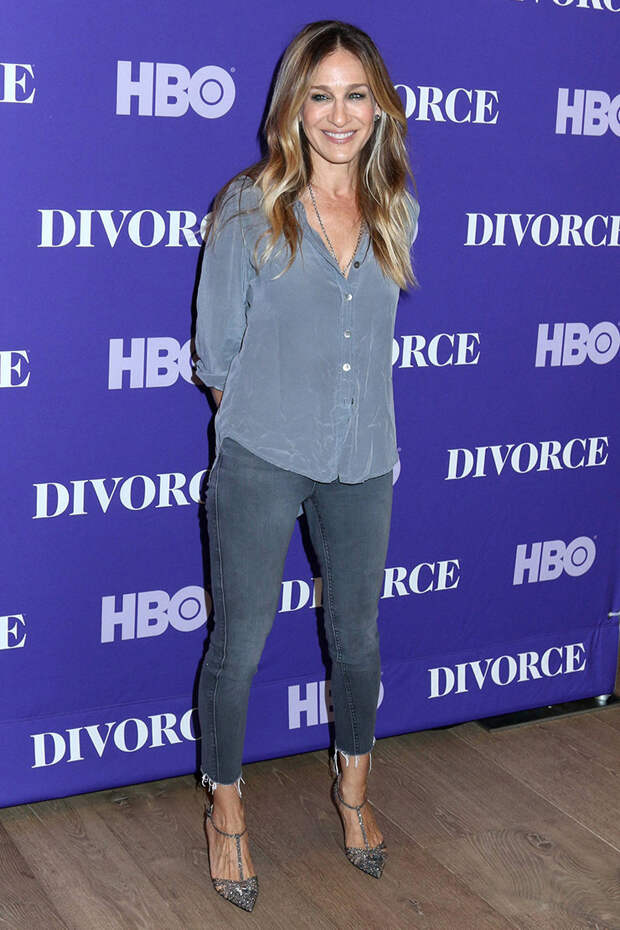 Сара Джессика Паркер - одна из самых преданных поклонниц серых вещей. Звезда "Секса в большом городе" часто сочетает в образах самые разные оттенки этого цвета - от "мокрого асфальта" до пепельного, и выглядит при этом ярко. Она не представляет свою жизнь без графитовых скинни, грифельных шифоновых блузок и "стальных" джемперов.